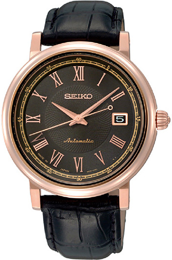 Мужские механические наручные часы с автоподзаводом и возможностью ручного завода Seiko SRP122J1 коллекции Presage Японской сборки. Калибр механизма — 4R35. Запас хода более 40-ка часов. 21 600 полуколебаний в час. Количество камней - 23. На данной модели отображается дата. Функция стоп-секунда (остановка секундной стрелки для установки точного времени). Сапфировое стекло. Ремешок — телячья кожа. На корпус данной модели нанесено PVD покрытие. Завинчивающаяся задняя крышка часов. Водонепроницаемость WR100 (10 атм). Японская сборка (Made In Japan).