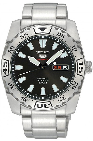 Мужские механические наручные часы с автоподзаводом и возможностью ручного завода Seiko SRP165K1 коллекции Seiko 5 Sports. Калибр механизма — 4R36. Запас хода более 40-ка часов. Количество камней - 24. На данной модели отображается дата и день недели. Функция стоп-секунда (остановка секундной стрелки для установки точного времени). Стрелки и цифры покрыты люминесцентным напылением (светятся в темноте). Вращающийся безель. Прозрачная завинчивающаяся задняя крышка часов. Водонепроницаемость WR100 (10 атм).