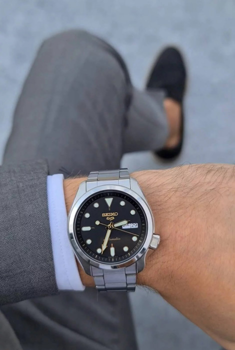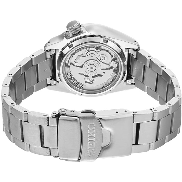 Мужские механические наручные часы с автоподзаводом и возможностью ручного завода Seiko SRPE57K1 (SRPE57K1S) коллекции Seiko 5 Sports. Калибр механизма — 4R36. Запас хода более 40-ка часов. 21 600 полуколебаний в час. Количество камней - 24. На данной модели отображается текущая дата и день недели. Функция стоп-секунда (остановка секундной стрелки для установки точного времени). Стрелки и метки покрыты люминесцентным напылением LumiBright (светятся в темноте). На данную модель установлено минеральное стекло повышенной прочности Hardlex Crystal. Стальной браслет. Прозрачная завинчивающаяся задняя крышка часов. Водонепроницаемость WR100 (10 атм).