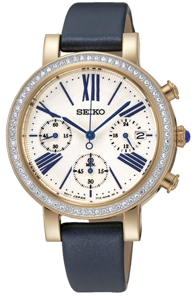 Женские кварцевые наручные часы с хронографом (секундомером) Seiko SRW016P1 коллекции CS Dress. Калибр механизма — 7T12. Секундомер может отсчитывать до 60 минут с шагом 1/5 секунды. На данной модели отображается дата. 24-х часовой циферблат. На корпус частично нанесено стойкое PVD покрытие. Установлено минеральное стекло повышенной прочности Hardlex Crystal. Корпус украшен камнями Swarovski.