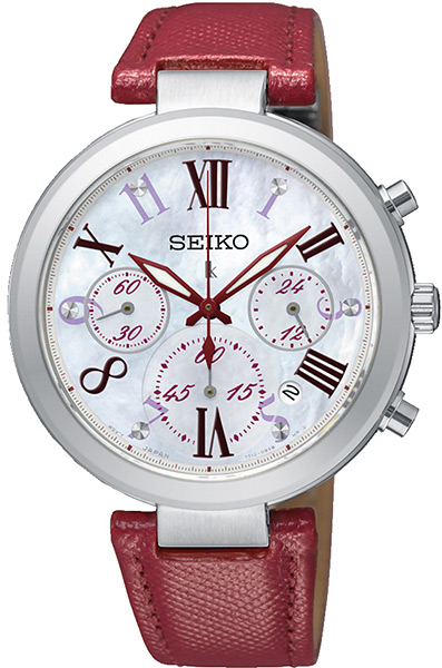 Женские кварцевые наручные часы с хронографом (секундомером) Seiko SRW785P1 коллекции Lukia. Калибр механизма — 7T12. Секундомер может отсчитывать до 60 минут с шагом 1/5 секунды. На данной модели отображается дата. 24-х часовой циферблат. Установлено сапфировое стекло (устойчиво к царапинам). Стрелки покрыты люминесцентным напылением (светятся в темноте). Ремешок — телячья кожа. Водонепроницаемость WR100 (10 атм).