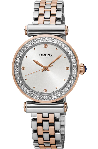 Женские кварцевые наручные часы Seiko SRZ466P1 коллекции CS Dress. Калибр механизма — 7N01. На корпус и браслет данной модели частично нанесено стойкое PVD покрытие. Установлено минеральное стекло повышенной прочности Hardlex Crystal. Корпус украшен камнями Swarovski.