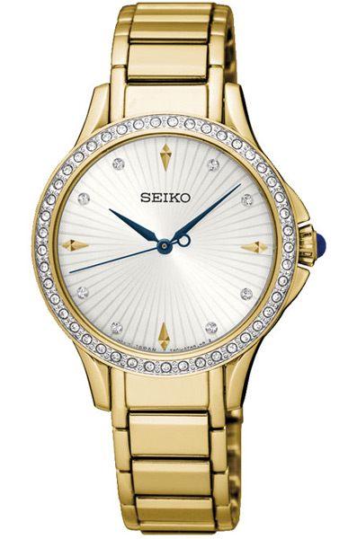 Женские кварцевые наручные часы Seiko SRZ488P1 коллекции CS Dress. Калибр механизма — 7N01. На данную модель установлено минеральное стекло повышенной прочности Hardlex Crystal. На корпус и браслет данной модели нанесено PVD покрытие. Корпус украшен камнями кристаллами Swarovski.
