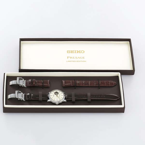 Мужские механические наручные часы с автоподзаводом и возможностью ручного завода Seiko SSA409J1 Star Bar Honeycomb коллекции Presage Cocktail Time. Лимитированная серия, всего выпущено 6000 штук. Модель комплектуется двумя кожаными ремешками. Дизайн серии Cocktail Time разработан совместно с известным Японским барменом Шинобу Ишигаки, цвет циферблата данной модели соответствует цвету одного из его коктейлей. Калибр механизма — 4R38. Запас хода более 40-ка часов. 21 600 полуколебаний в час. Количество камней - 24. Функция стоп-секунда (остановка секундной стрелки для установки точного времени). На циферблате расположено прозрачное окошко, через него частично видно работу механизма. Установлено сферическое минеральное стекло повышенной прочности Hardlex Crystal. Ремешок — телячья кожа. Удобная застежка автоматическая клипса. Завинчивающаяся задняя крышка часов. Водонепроницаемость WR50 (5 атм). Японская сборка (Made In Japan).