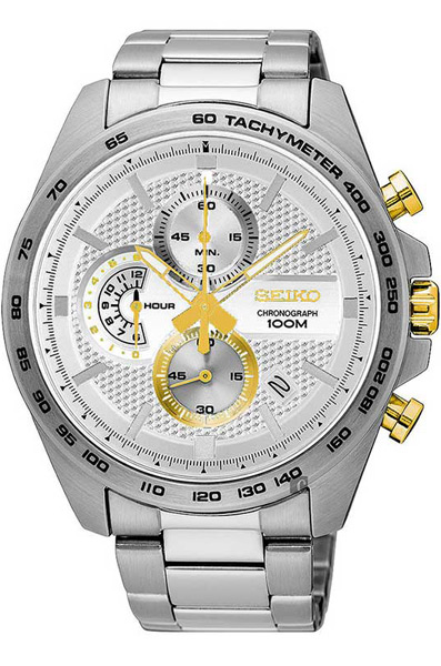 Мужские кварцевые наручные часы с хронографом (секундомером) Seiko SSB285P1 коллекции CS Sports. Калибр механизма — 8T67. Секундомер может отсчитывать до 12 часов с шагом 1/5 секунды, так же на циферблате часов присутствует шкала тахиметра для измерения средней скорости движения. На данной модели отображается дата. Установлено минеральное стекло повышенной прочности Hardlex Crystal. На корпус частично нанесено стойкое PVD покрытие. Стрелки покрыты люминесцентным напылением (светятся в темноте). Завинчивающаяся задняя крышка часов. Водонепроницаемость WR100 (10 атм).