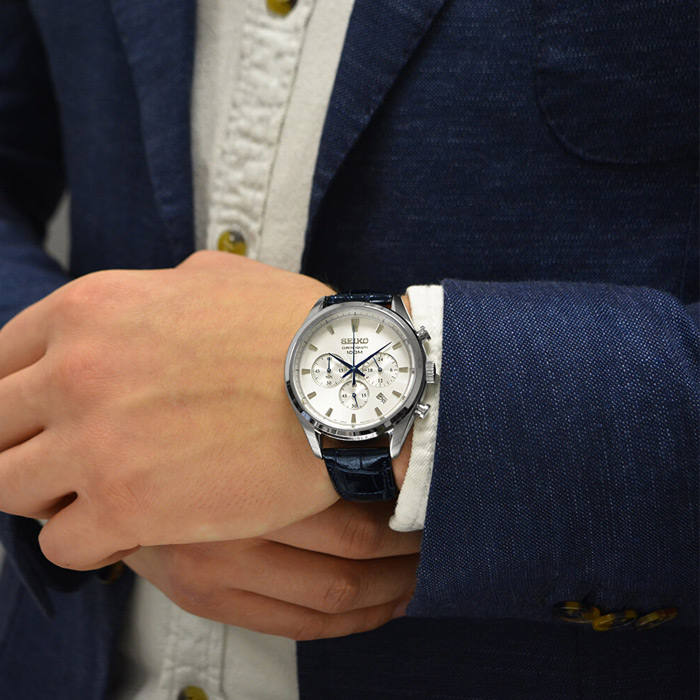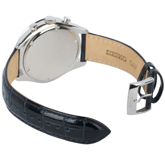 Мужские кварцевые наручные часы с хронографом (секундомером) Seiko SSB291P1 коллекции CS Dress. Калибр механизма — 8T63. Секундомер может отсчитывать до 60 минут. На данной модели отображается дата и время суток 24-х часовой циферблат. Установлено минеральное стекло повышенной прочности Hardlex Crystal. Ремешок — телячья кожа. Завинчивающаяся задняя крышка часов. Водонепроницаемость WR100 (10 атм).