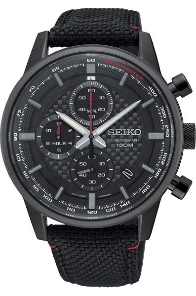Мужские кварцевые наручные часы с хронографом (секундомером) Seiko SSB315P1 коллекции CS Sports. Калибр механизма — 8T67. Секундомер может отсчитывать до 12 часов с шагом 1/5 секунды, так же на циферблате часов присутствует шкала тахиметра для измерения средней скорости движения. На данной модели отображается дата. Установлено минеральное стекло повышенной прочности Hardlex Crystal. Стрелки покрыты люминесцентным напылением (светятся в темноте). Ремешок — нейлоновый (Текстиль). На корпус нанесено стойкое PVD покрытие. Завинчивающаяся задняя крышка часов. Водонепроницаемость WR100 (10 атм).