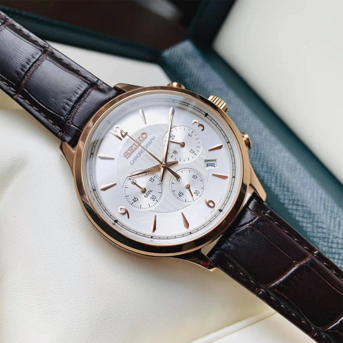 Мужские кварцевые наручные часы с хронографом (секундомером) Seiko SSB342P1 коллекции CS Dress. Калибр механизма — 8T63. Секундомер может отсчитывать до 60 минут. На данной модели отображается дата. Установлено минеральное стекло повышенной прочности Hardlex Crystal. Ремешок — телячья кожа. На корпус часов нанесено стойкое PVD покрытие. Завинчивающаяся задняя крышка часов. Водонепроницаемость WR100 (10 атм).