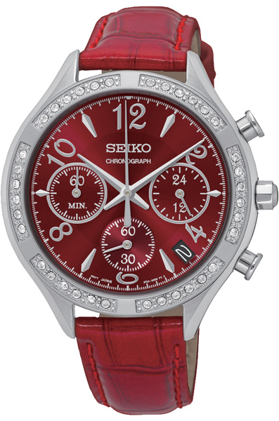 Женские кварцевые наручные часы с хронографом (секундомером) Seiko SSB889P1 коллекции CS Dress. Калибр механизма — 8T63. Секундомер может отсчитывать до 60 минут. На данной модели отображается дата и время суток 24-х часовой циферблат. Установлено минеральное стекло повышенной прочности Hardlex Crystal. Ремешок — телячья кожа. Корпус украшен камнями Swarovski.