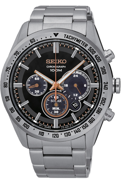 Мужские кварцевые наручные часы с хронографом (секундомером) на солнечной батарее Seiko SSC461P1 коллекции CS Sports. Калибр механизма — V175. Аккумулятор данной модели заряжается от любого источника света. Срок работы аккумулятора с полным зарядом — около 6-ти месяцев. Примерный срок службы аккумулятора — 10 лет. Присутствует функция информирования о недостаточном заряде. Секундомер может отсчитывать до 60 минут, так же на циферблате часов присутствует шкала тахиметра для измерения средней скорости движения. На данной модели отображается дата и время суток (24-х часовая шкала). Стрелки и метки покрыты люминесцентным напылением LumiBright (светятся в темноте). Сапфировое стекло. Завинчивающаяся задняя крышка часов. Водонепроницаемость WR100 (10 атм).