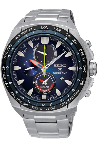 Мужские кварцевые наручные часы Seiko SSC549P1 с хронографом (секундомером), будильником и функцией мирового времени на солнечной батарее. Коллекции Prospex. Специальная серия, выпущенная совместно с Японским яхтсменом Коджиро Шираиши. Калибр механизма — V195. Аккумулятор данной модели заряжается от любого источника света. Срок работы аккумулятора с полным зарядом — около 6-ти месяцев. Примерный срок службы аккумулятора — 10 лет. Присутствует индикатор уровня заряда и функция информирования о недостаточном заряде аккумулятора. Возможно отображение местного времени в 25 часовых поясах мира. Секундомер может отсчитывать до 24- часов. Будильник может быть установлен в течение ближайших 24 часа. На данной модели отображается дата. Стрелки и метки покрыты люминесцентным напылением LumiBright (светятся в темноте). Установлено сапфировое стекло. Завинчивающаяся задняя крышка часов и заводная головка. Водонепроницаемость WR100 (10 атм).