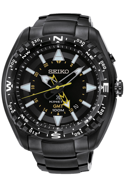 Мужские автокварцевые наручные часы Seiko SUN047P1 с механизмом Kinetic и функцией двойного времени (GMT) коллекции Prospex. Калибр механизма — 5M85. Аккумулятор данной модели заряжается от движения руки. Срок работы аккумулятора с полным зарядом — около 6-ти месяцев. Примерный срок службы аккумулятора — 10 лет. Присутствует функция информирования о недостаточном заряде и индикатор запаса энергии. На данной модели отображается дата. Установлено минеральное стекло повышенной прочности Hardlex Crystal. На корпус и браслет часов нанесено PVD покрытие. Стрелки и цифры покрыты люминесцентным напылением LumiBright (светятся в темноте). Прозрачная завинчивающаяся задняя крышка часов и заводная головка. Водонепроницаемость WR100 (10 атм).