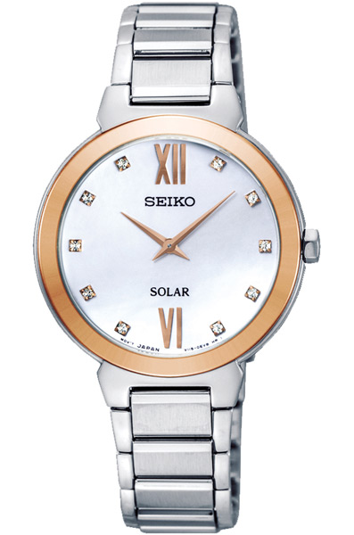 Женские кварцевые наручные часы на солнечной батарее Seiko SUP382P1 коллекции CS Dress. Калибр механизма — V115. Аккумулятор данной модели заряжается от любого источника света. Срок работы аккумулятора с полным зарядом — около 12-ти месяцев. Примерный срок службы аккумулятора — 10 лет. Установлено минеральное стекло повышенной прочности Hardlex Crystal. Перламутровый циферблат украшен кристаллами Swarovski. На корпус частично нанесено стойкое PVD покрытие. Водонепроницаемость WR50 (5 атм).