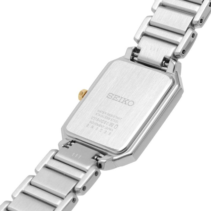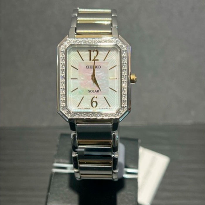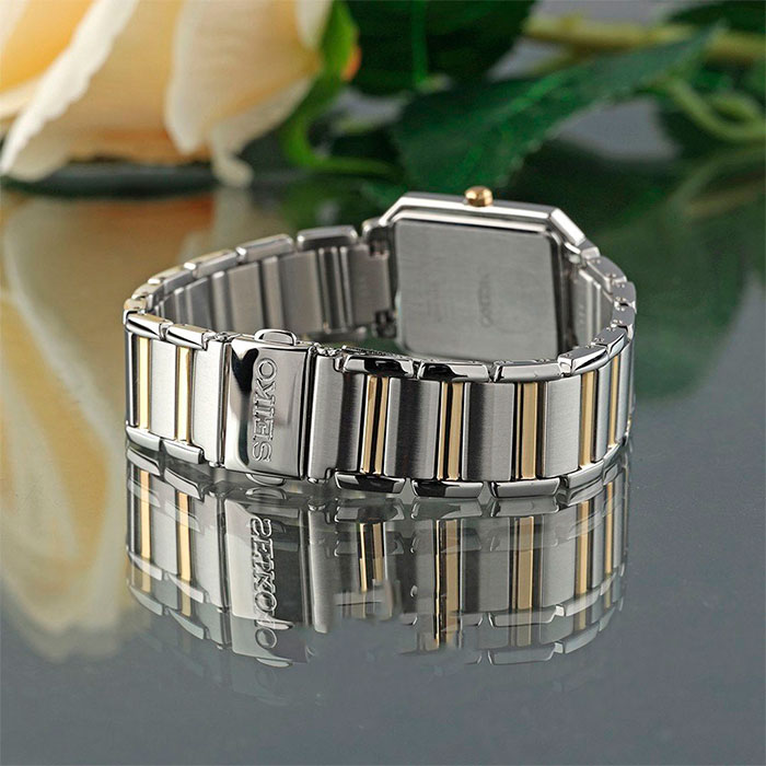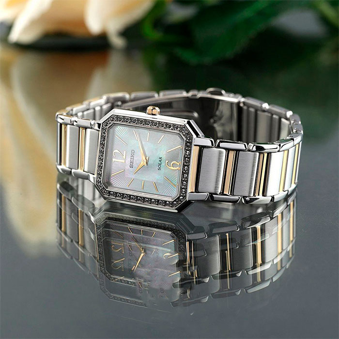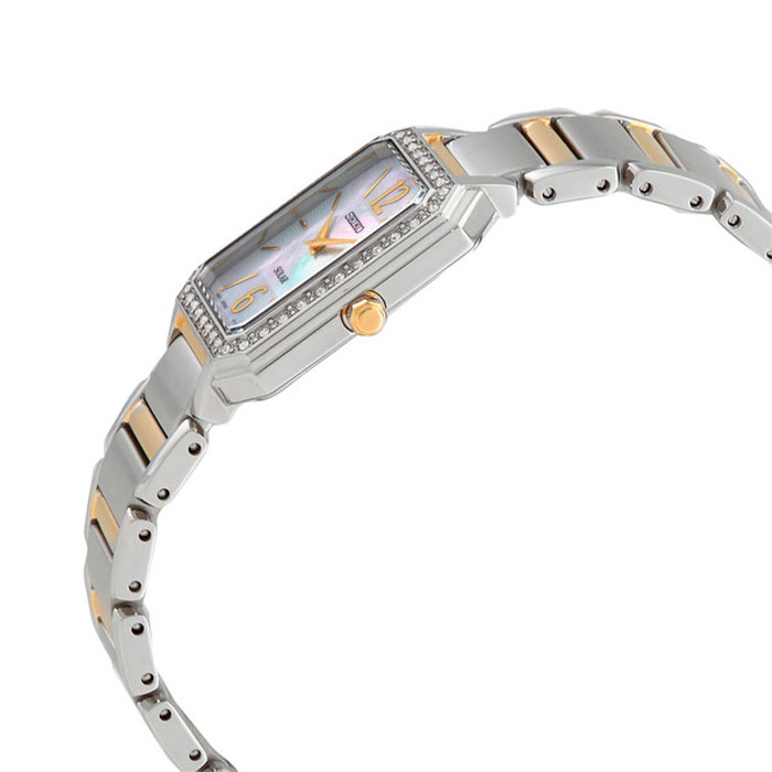 Женские кварцевые наручные часы на солнечной батарее Seiko SUP466P1 коллекции CS Dress. Тонкий корпус — всего 6.3 мм. Калибр механизма — V115. Аккумулятор данной модели заряжается от любого источника света. Срок работы аккумулятора с полным зарядом — не менее 12-ти месяцев. Примерный срок службы аккумулятора — 10 лет. Установлено минеральное стекло повышенной прочности Hardlex Crystal. Корпус украшен кристаллами Swarovski. Стальной браслет. На корпус и браслет частично нанесено стойкое PVD покрытие. Водонепроницаемость WR (3 атм).