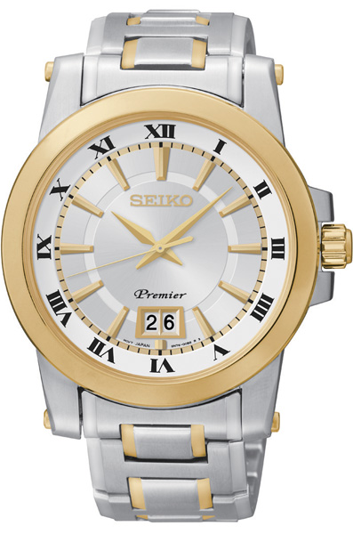 Мужские кварцевые наручные часы Seiko SUR016P1 коллекции Premier. Калибр механизма — 6N76. На данной модели отображается дата. Сапфировое стекло. На корпус и браслет частично нанесено PVD покрытие. Завинчивающаяся задняя крышка часов. Водонепроницаемость WR100 (10 атм).