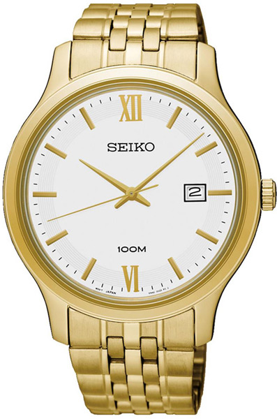 Мужские кварцевые наручные часы Seiko SUR224P1 коллекции Promo. Калибр механизма — 6N42. На данной модели отображается дата. Установлено минеральное стекло повышенной прочности Hardlex Crystal. На корпус и браслет нанесено PVD покрытие. Водонепроницаемость WR100 (10 атм).