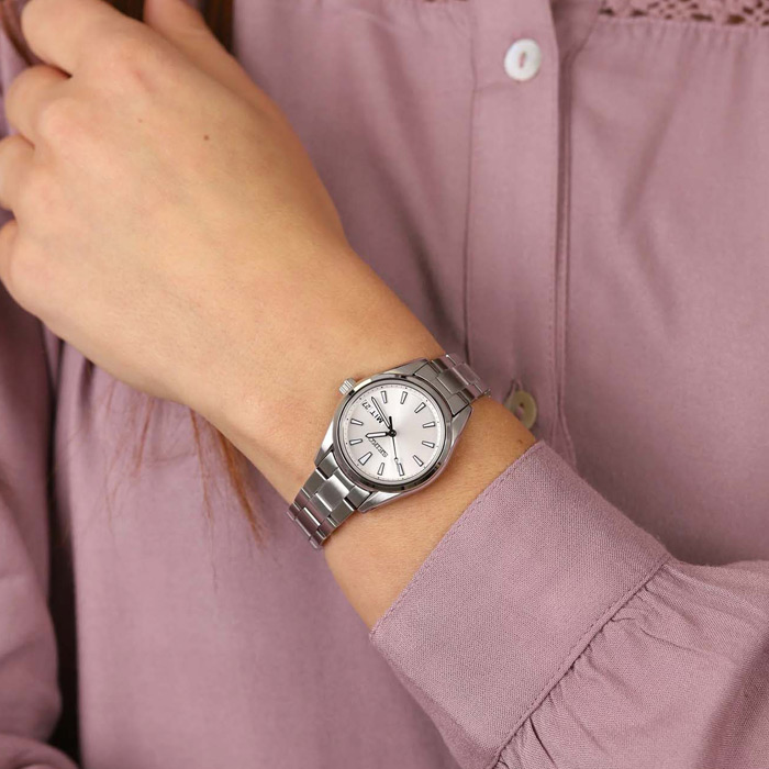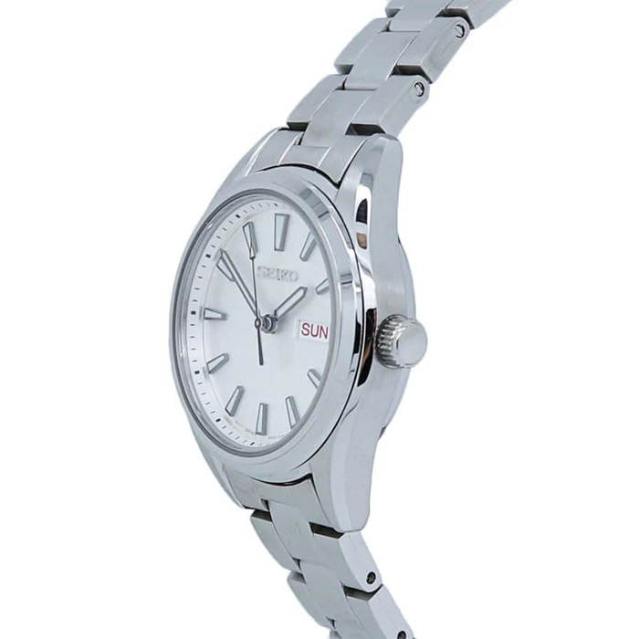 Женские кварцевые наручные часы Seiko SUR349P1 коллекции CS Dress. Калибр механизма — 6N33. На данной модели отображается текущая дата и день недели. Установлено сапфировое стекло устойчивое к царапинам. Завинчивающаяся задняя крышка часов. Водонепроницаемость WR100 (10 атм).