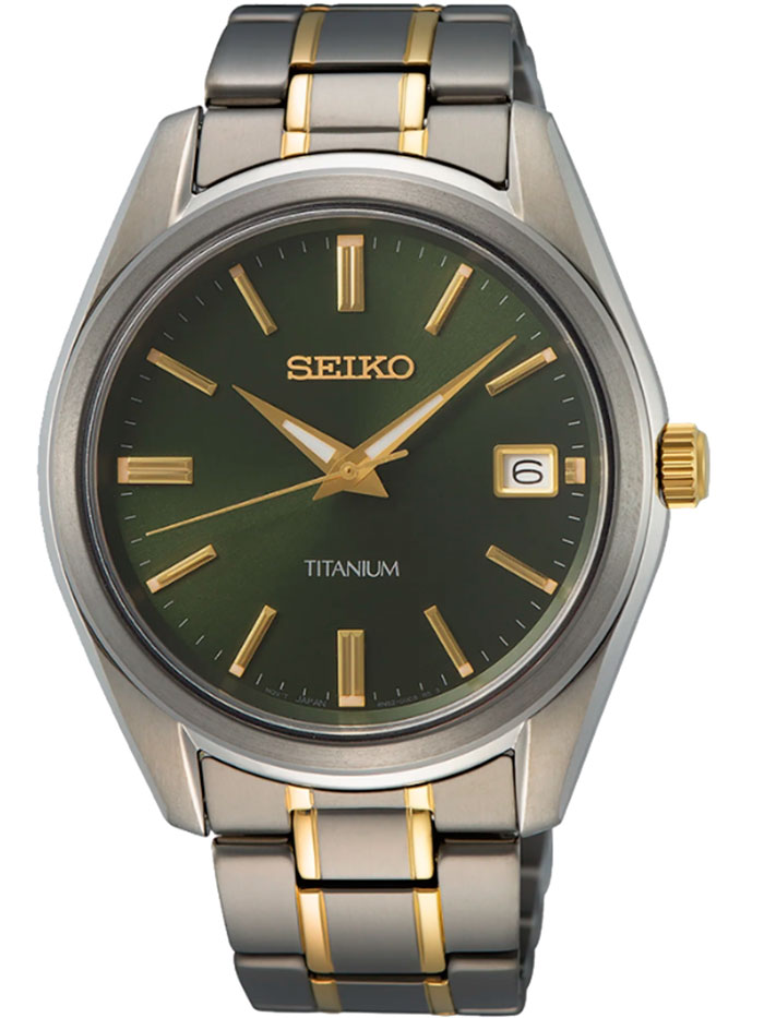 Титановые мужские кварцевые наручные часы Seiko SUR377P1 коллекции CS Dress. Калибр механизма — 6N52. На данной модели отображается текущая дата. Установлено устойчивое к царапинам сапфировое стекло. Стрелки и метки покрыты люминесцентным напылением LumiBright (светятся в темноте). На корпус и браслет частично нанесено стойкое PVD покрытие. Водонепроницаемость WR100 (10 атм).