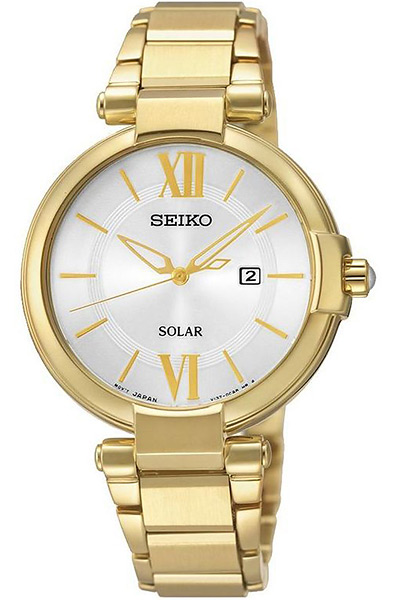 Женские кварцевые наручные часы на солнечной батарее Seiko SUT158P1 коллекции CS Dress. Калибр механизма — V137. Аккумулятор данной модели заряжается от любого источника света. Срок работы аккумулятора с полным зарядом — около 12-ти месяцев. Примерный срок службы аккумулятора — 10 лет. На данной модели отображается дата. Установлено минеральное стекло повышенной прочности Hardlex Crystal. На корпус и браслет нанесено PVD покрытие.
