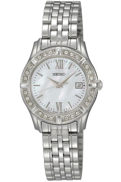 Женские кварцевые наручные часы Seiko SXDE49P1 коллекции Promo. Калибр механизма — 7N82. На данной модели отображается дата. Установлено минеральное стекло повышенной прочности Hardlex Crystal. Корпус украшен камнями Swarovski. Перламутровый циферблат.