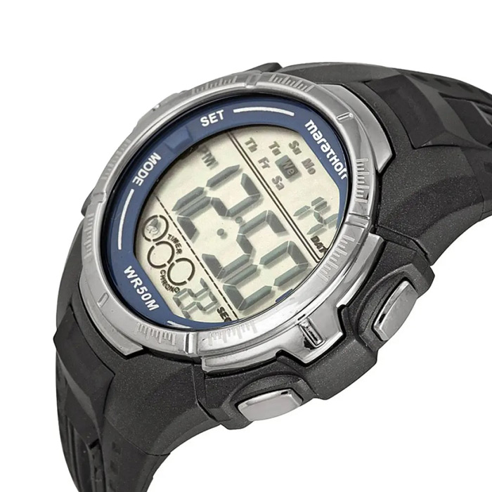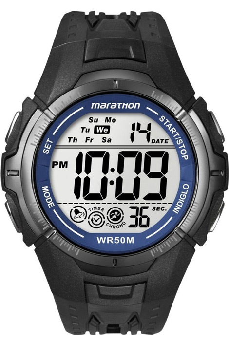 Мужские электронные кварцевые наручные часы Timex T5K359 коллекции Marathon. Функциональность данной модели: формат времени 12/24, сплит-хронограф на 100 часов, будильник, второй часовой пояс, вечный календарь.Уникальная электролюминесцентная подсветка INDIGLO, которая освещает весь циферблат ярким бирюзовым светом при нажатии на кнопку, что позволяет прекрасно видеть показания циферблата в сумерках или даже в полной темноте. Водонепроницаемость WR50 (5 атм).