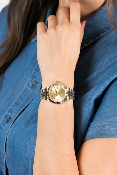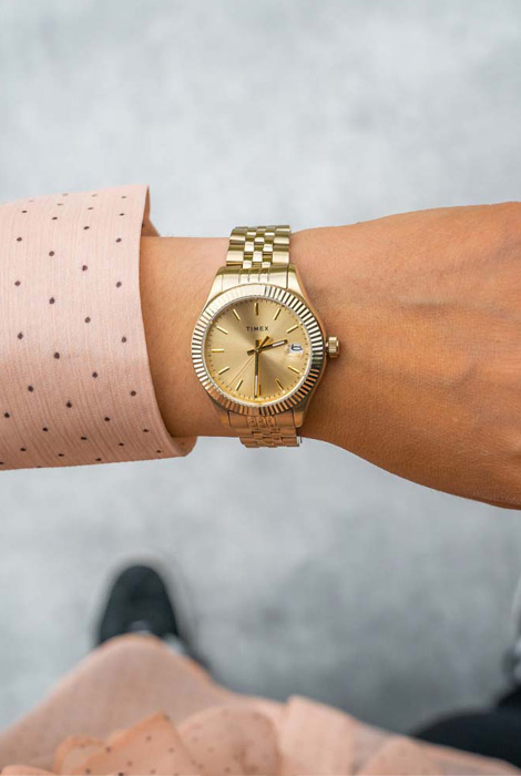 Женские кварцевые наручные часы Timex TW2T86900 коллекции Waterbury Legacy. Стрелки и метки покрыты люминесцентным напылением (светятся в темноте). На данной модели отображается дата. Стальной браслет. На корпус и браслет нанесено стойкое PVD покрытие. Водонепроницаемость WR50 (5 атм).