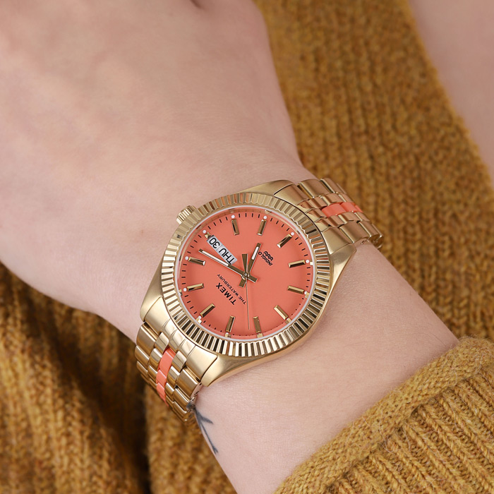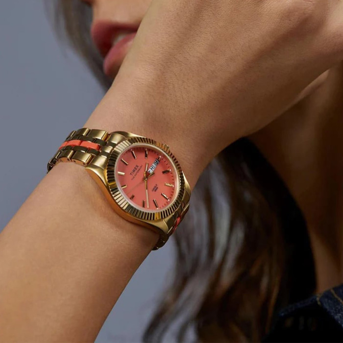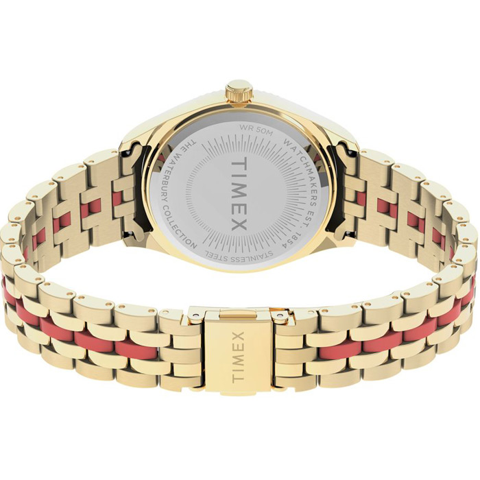 Женские кварцевые наручные часы Timex TW2U82700 коллекции Waterbury Malibu. Уникальная электролюминесцентная подсветка INDIGLO Night-Light с ночным режимом, которая освещает весь циферблат ярким бирюзовым светом при нажатии на заводную головку, что позволяет прекрасно видеть показания циферблата в сумерках или даже в полной темноте. Стрелки и метки покрыты люминесцентным напылением (светятся в темноте). На данной модели отображается день недели и текущая дата. Стальной браслет. На корпус и браслет нанесено стойкое PVD покрытие. Водонепроницаемость WR50 (5 атм).