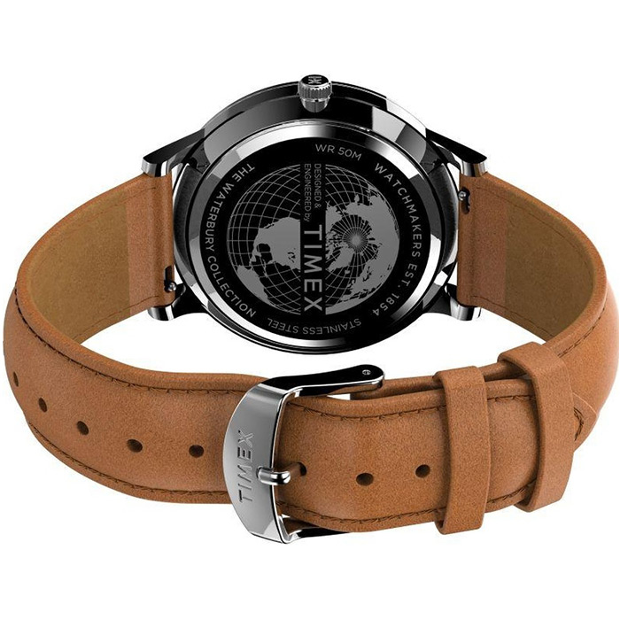 Мужские кварцевые наручные часы Timex TW2U97200 коллекции Waterbury Classic. Уникальная электролюминесцентная подсветка INDIGLO, которая освещает весь циферблат ярким бирюзовым светом при нажатии на заводную головку, что позволяет прекрасно видеть показания циферблата в сумерках или даже в полной темноте. Стрелки покрыты люминесцентным напылением (светятся в темноте). Кожаный ремешок. Водонепроницаемость WR50 (5 атм).