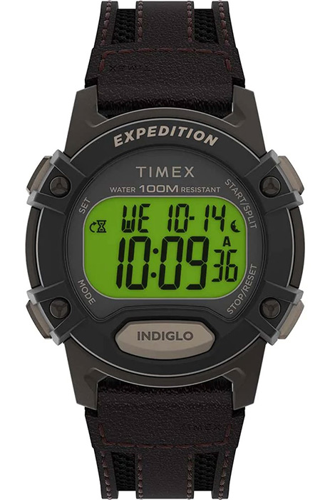 Мужские электронные кварцевые наручные часы Timex TW4B24500 коллекции Expedition. Функциональность данной модели: формат времени 12/24, сплит-хронограф, таймер обратного отсчета, будильник, вечный календарь. Уникальная электролюминесцентная подсветка INDIGLO, которая освещает весь циферблат ярким бирюзовым светом при нажатии на кнопку, что позволяет прекрасно видеть показания циферблата в сумерках или даже в полной темноте. Водонепроницаемость WR100 (10 атм).