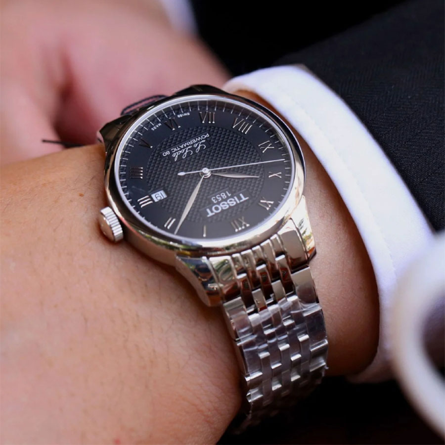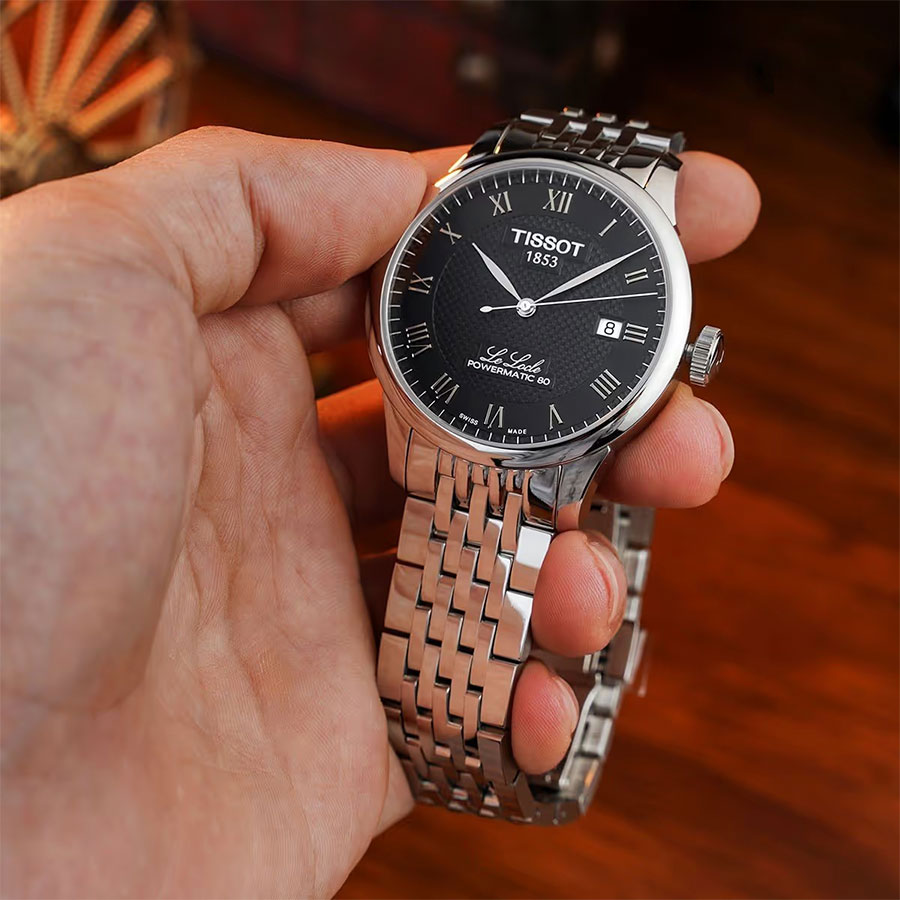 Мужские механические наручные часы TISSOT Le Locle Powermatic 80 T006.407.11.053.00 коллекции T Classic с автоподзаводом и возможностью ручного завода. Калибр механизма — Powermatic 80.111. В механизме часов использована запатентованная балансирная пружина Nivachron, благодаря чему запас хода значительно увеличен и составляет не менее 80-ти часов. Количество камней - 23. Функция стоп-секунда (остановка секундной стрелки для установки точного времени). На данной модели отображается текущая дата. Сапфировое стекло с антибликовым покрытием, устойчивое к появлению царапин. Завинчивающаяся прозрачная задняя крышка. Стальной браслет. Водонепроницаемость WR (3 атм). Размеры корпуса: (ШxТ) 39.3x9 мм. Гарантийный срок — 3 года (1 год от производителя + 2 года от магазина).