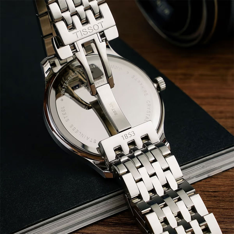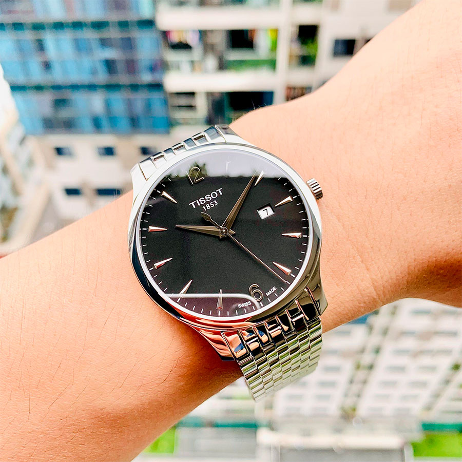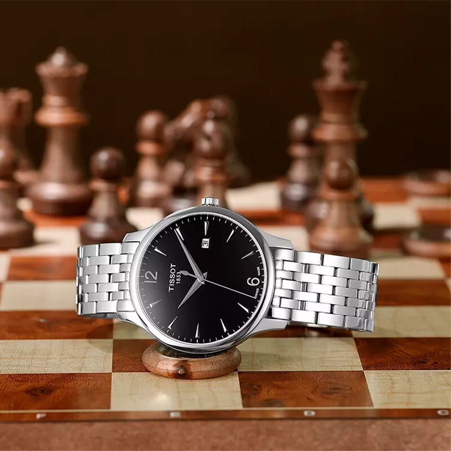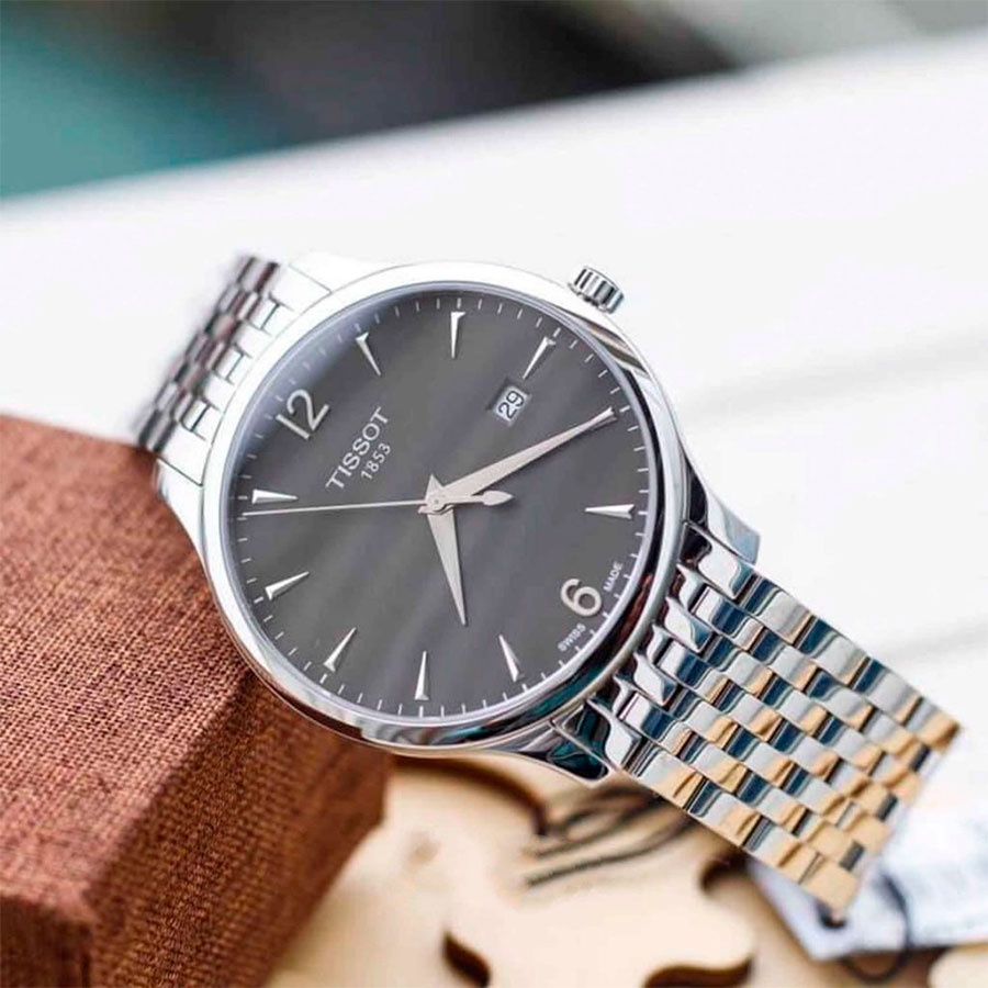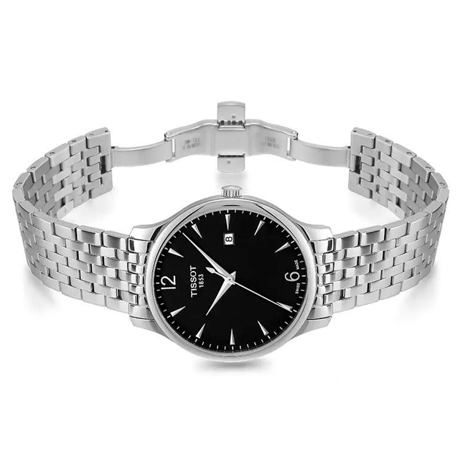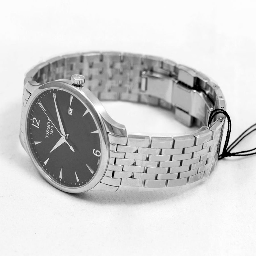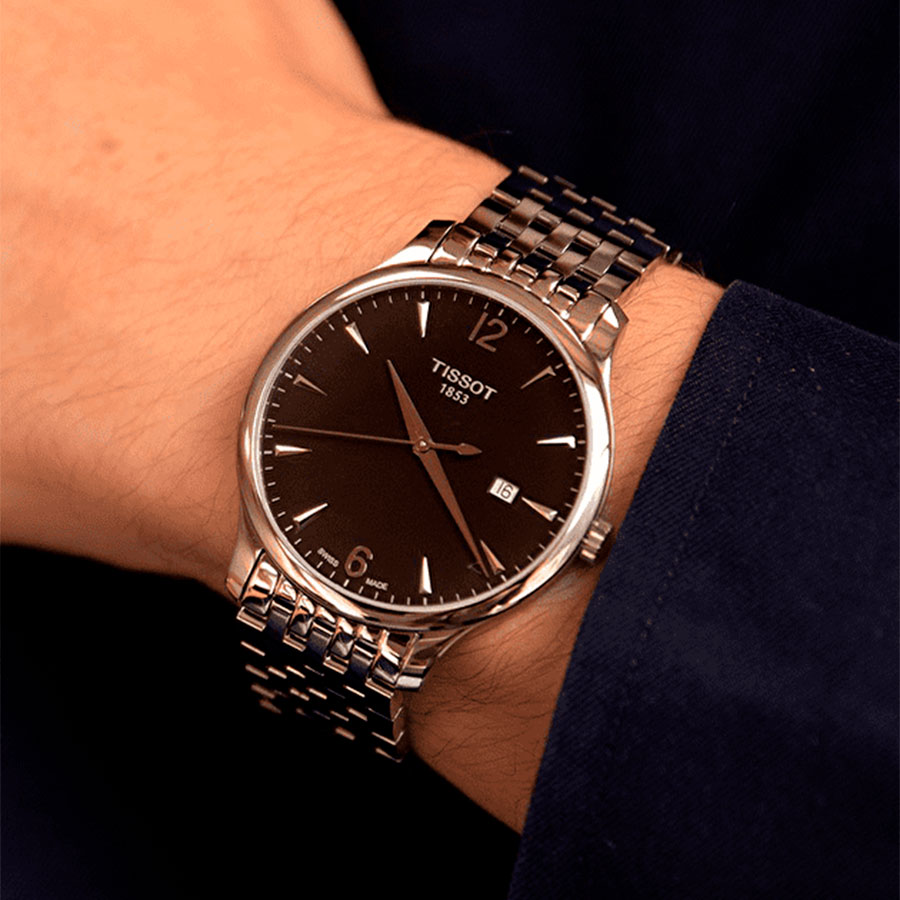 Мужские кварцевые наручные часы TISSOT Tradition T063.610.11.057.00 коллекции T Classic. Калибр механизма — ETA F06.111. На данной модели отображается текущая дата. Сапфировое стекло с антибликовым покрытием, устойчивое к появлению царапин. Стальной браслет. Водонепроницаемость WR (3 атм). Размеры корпуса: (ШxТ) 42x7 мм. Гарантийный срок — 3 года (1 год от производителя + 2 года от магазина).