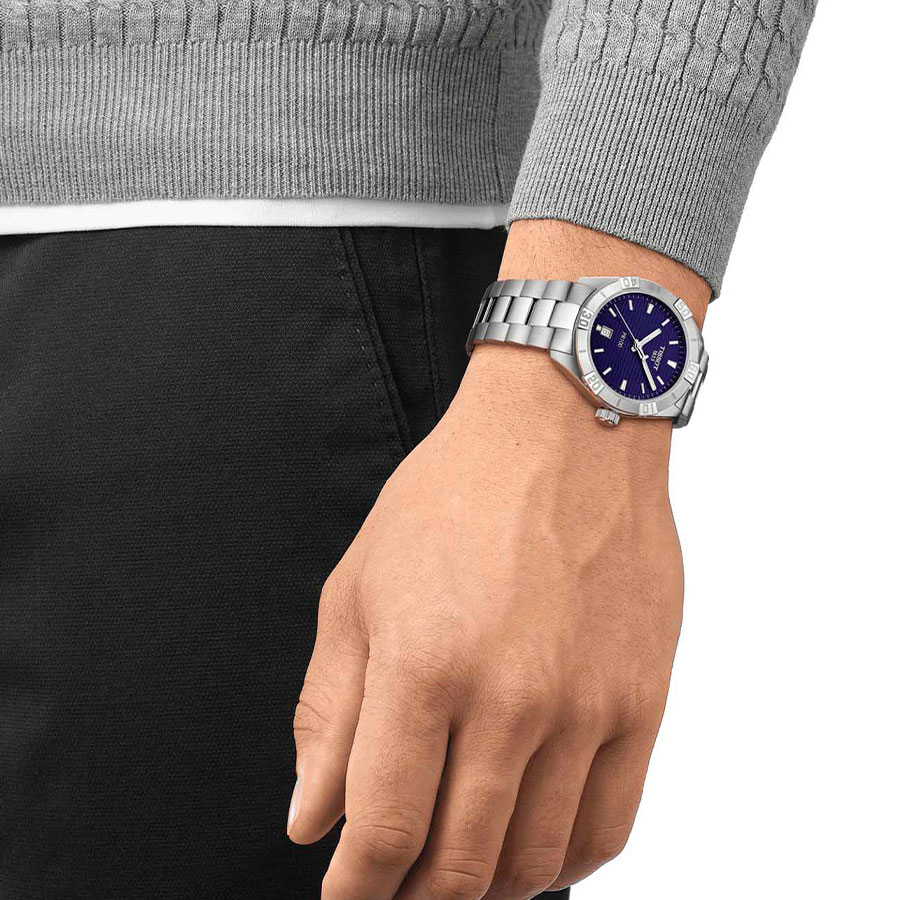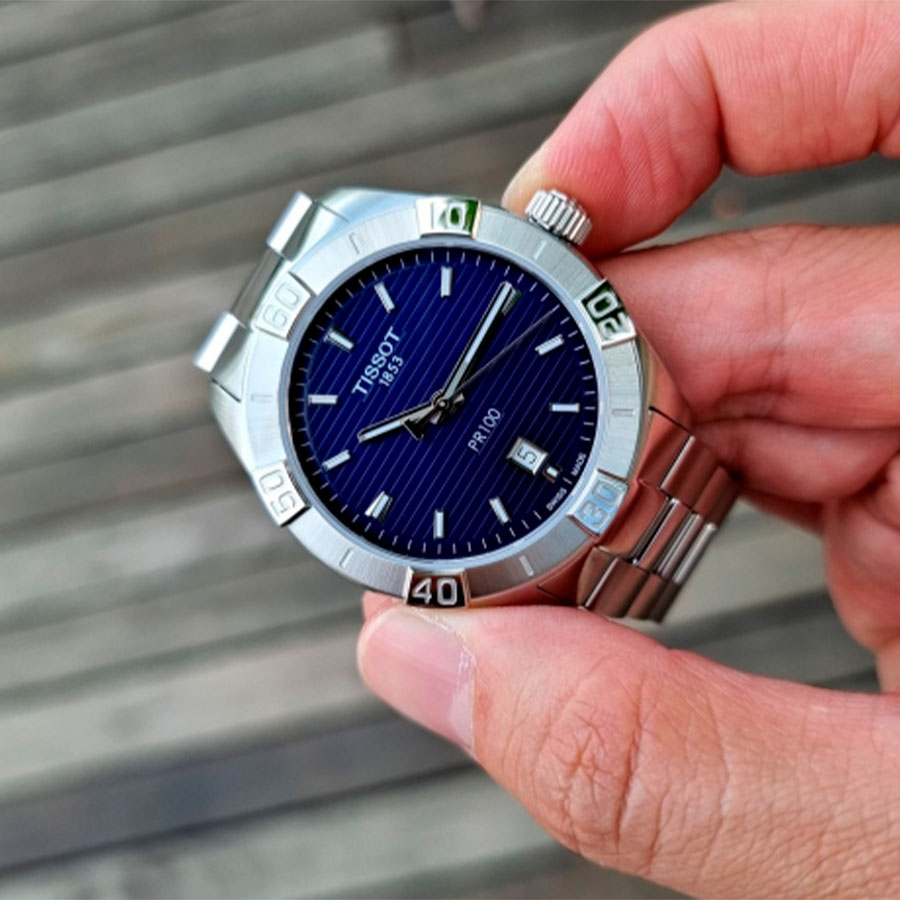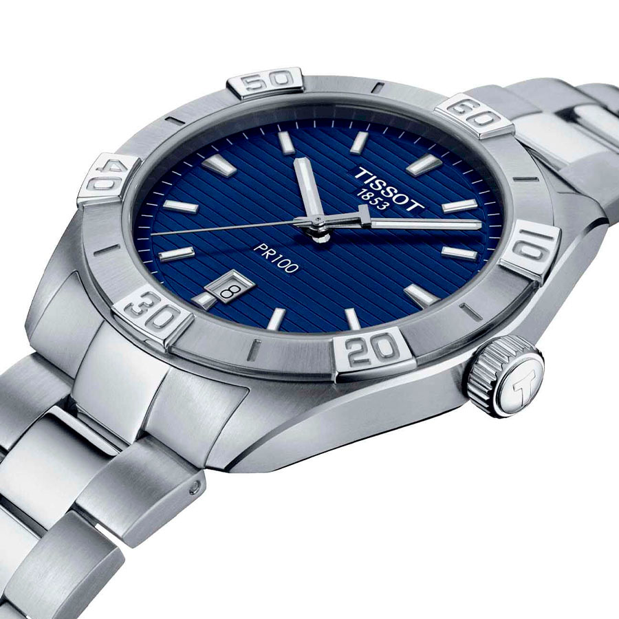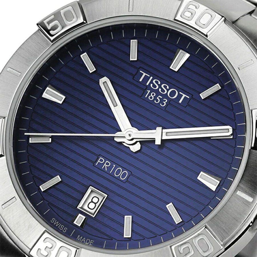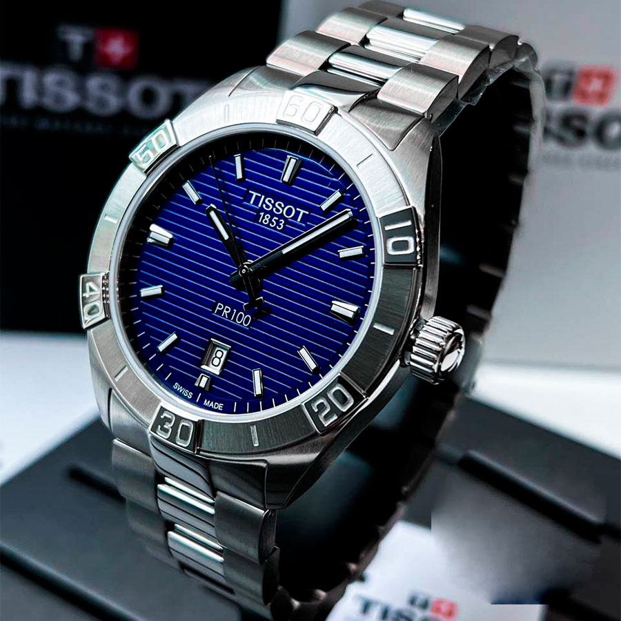 Мужские кварцевые наручные часы TISSOT PR 100 Sport Gent T101.610.11.041.00 коллекции T Classic. Калибр механизма — ETA F06.115. На данной модели отображается текущая дата. Стрелки покрыты люминесцентным напылением (светятся в темноте). Сапфировое стекло с антибликовым покрытием, устойчивое к появлению царапин. Стальной браслет. Водонепроницаемость WR100 (10 атм). Размеры корпуса: (ШxТ) 42x9.4 мм. Гарантийный срок — 3 года (1 год от производителя + 2 года от магазина).