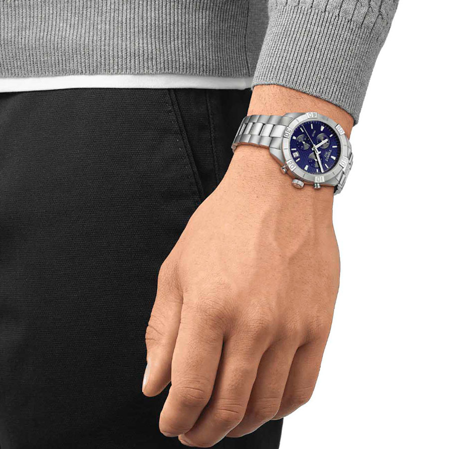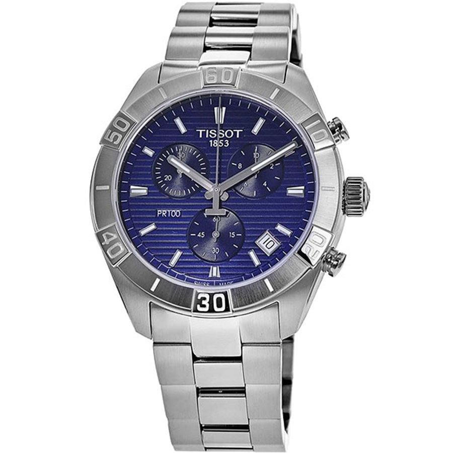 Мужские кварцевые наручные часы с хронографом (секундомером) TISSOT PR 100 Sport Gent Chronograph T101.617.11.041.00 коллекции T Classic. Калибр механизма — G10.212 AA PRECIDRIVE. На данной модели отображается текущая дата. Секундомер может отсчитывать до 29 минут 59 секунд. Стрелки покрыты люминесцентным напылением (светятся в темноте). Сапфировое стекло с антибликовым покрытием, устойчивое к появлению царапин. Стальной браслет. Водонепроницаемость WR100 (10 атм). Размеры корпуса: (ШxТ) 44x11 мм. Гарантийный срок — 3 года (1 год от производителя + 2 года от магазина).