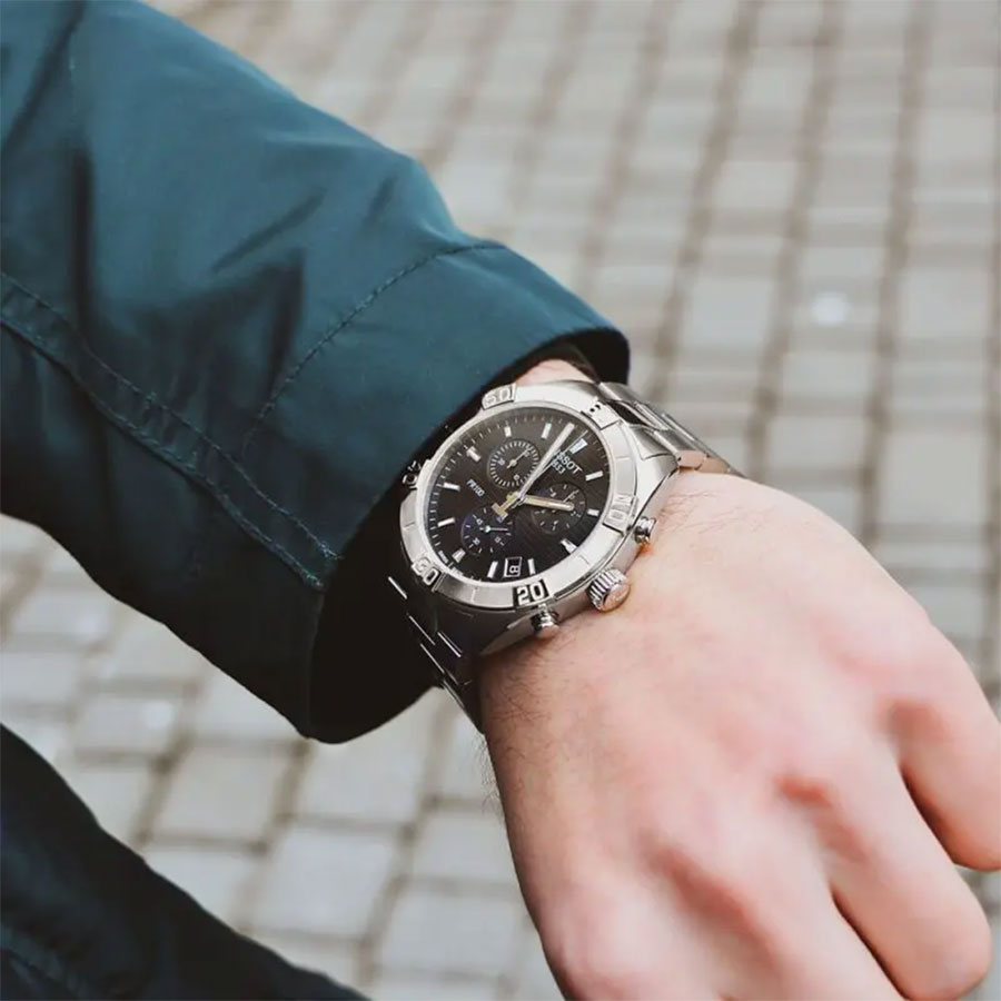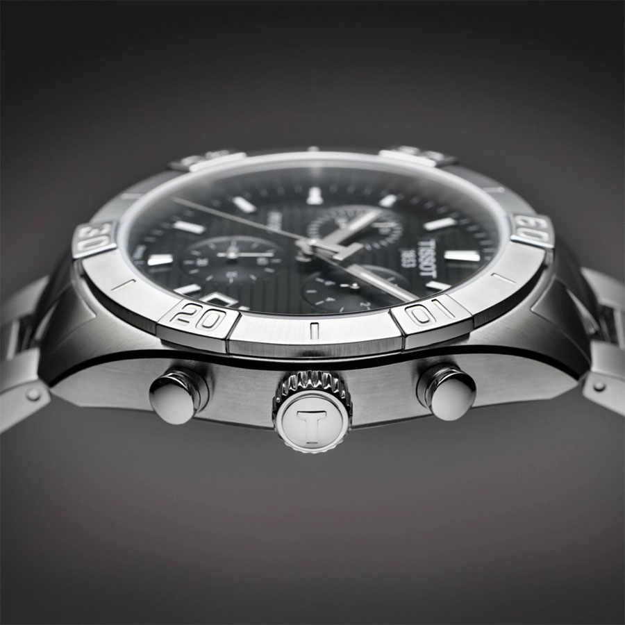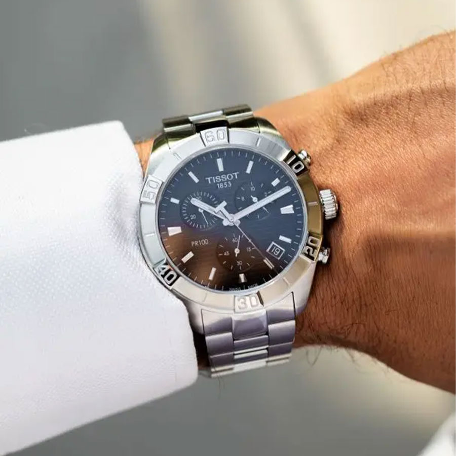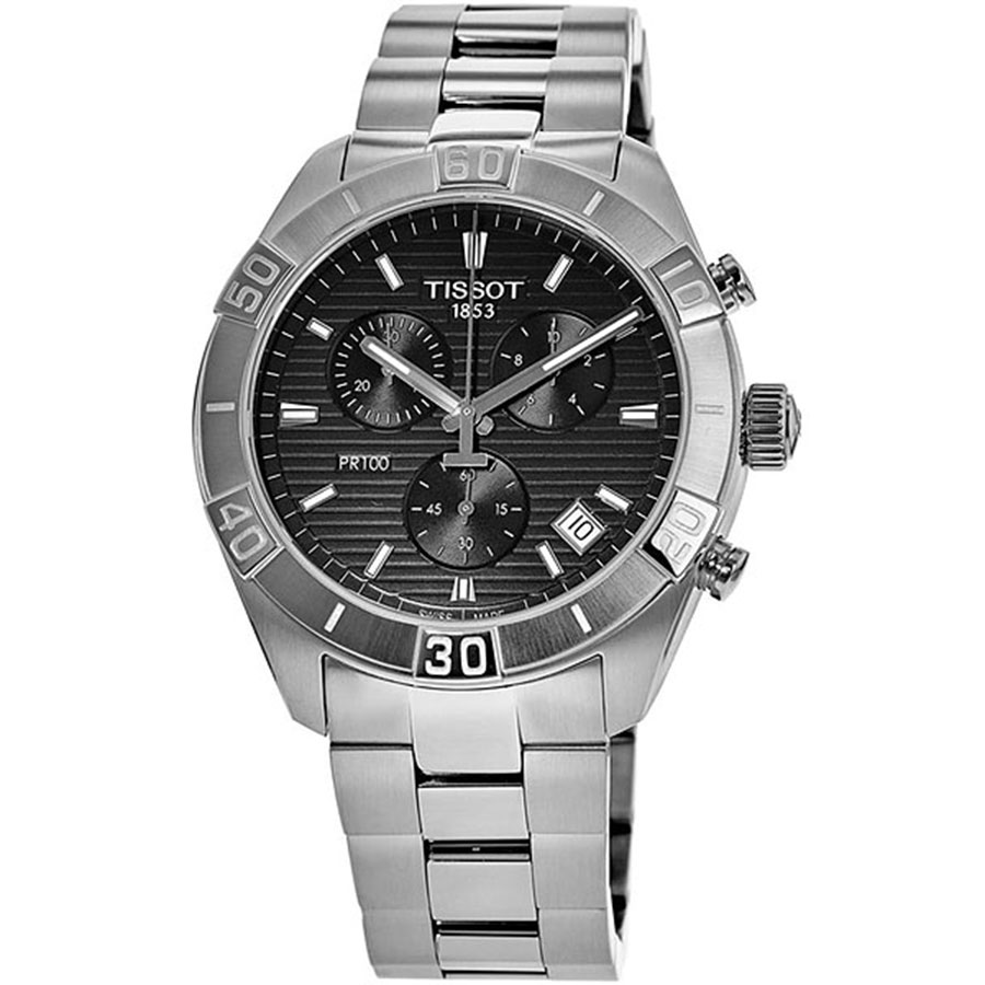 Мужские кварцевые наручные часы с хронографом (секундомером) TISSOT PR 100 Sport Gent Chronograph T101.617.11.051.00 коллекции T Classic. Калибр механизма — G10.212 AA PRECIDRIVE. На данной модели отображается текущая дата. Секундомер может отсчитывать до 29 минут 59 секунд. Стрелки покрыты люминесцентным напылением (светятся в темноте). Сапфировое стекло с антибликовым покрытием, устойчивое к появлению царапин. Стальной браслет. Водонепроницаемость WR100 (10 атм). Размеры корпуса: (ШxТ) 44x11 мм. Гарантийный срок — 3 года (1 год от производителя + 2 года от магазина).