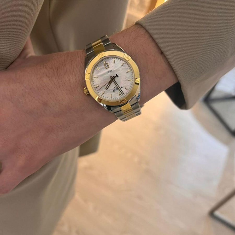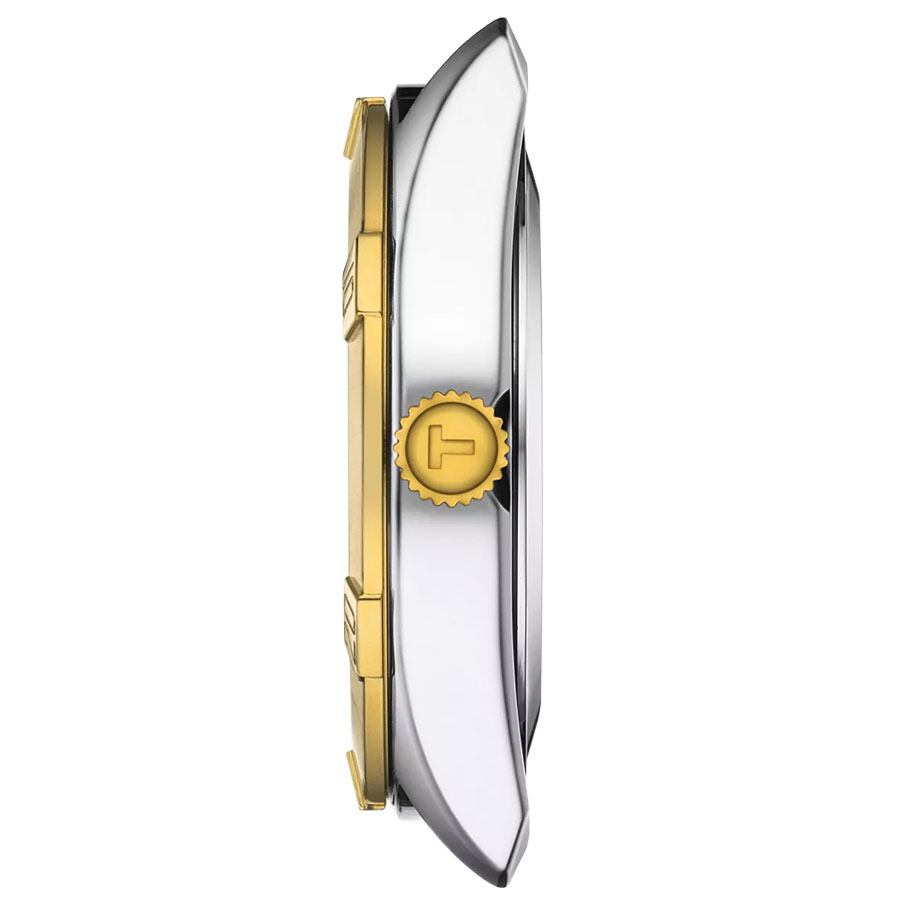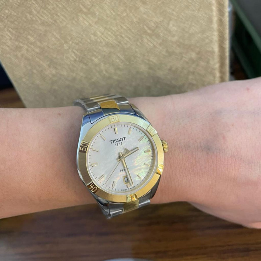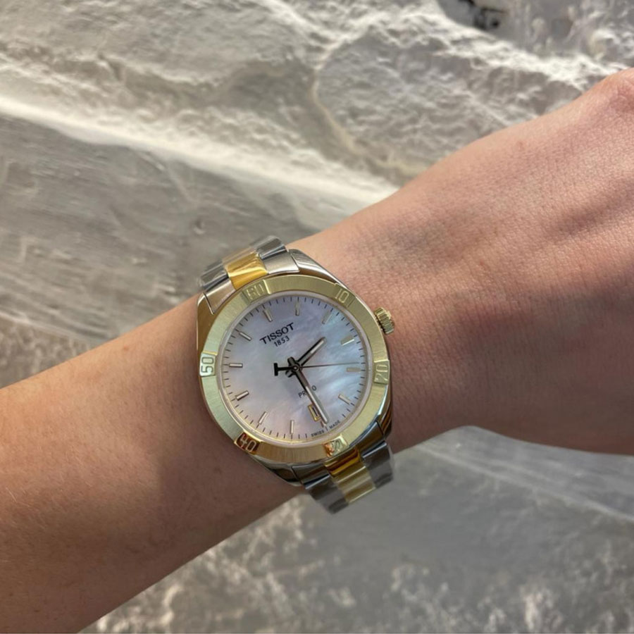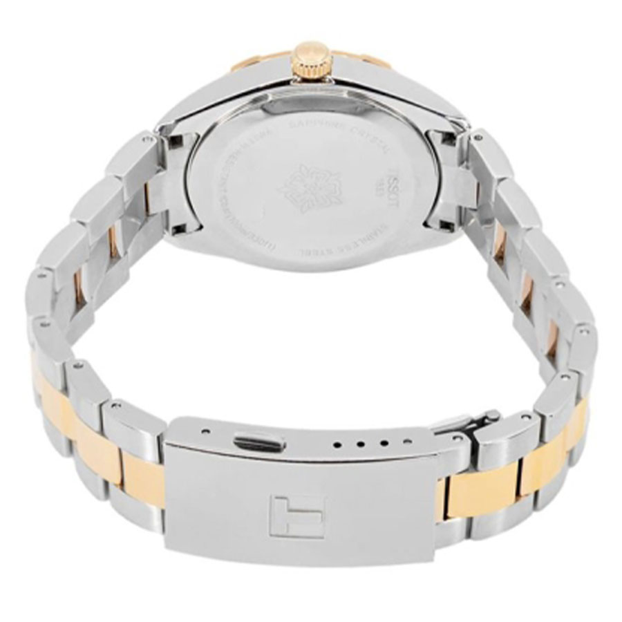 Женские кварцевые наручные часы TISSOT PR 100 Sport Chic T101.910.22.111.00 коллекции T Classic. Калибр механизма — ETA 955.412. На данной модели отображается текущая дата. Стрелки и метки покрыты люминесцентным напылением (светятся в темноте). Сапфировое стекло с антибликовым покрытием, устойчивое к появлению царапин. Стальной браслет. На корпус и браслет частично нанесено стойкое PVD покрытие. Водонепроницаемость WR100 (10 атм). Размеры корпуса: (ШxТ) 36x9 мм. Гарантийный срок — 3 года (1 год от производителя + 2 года от магазина).