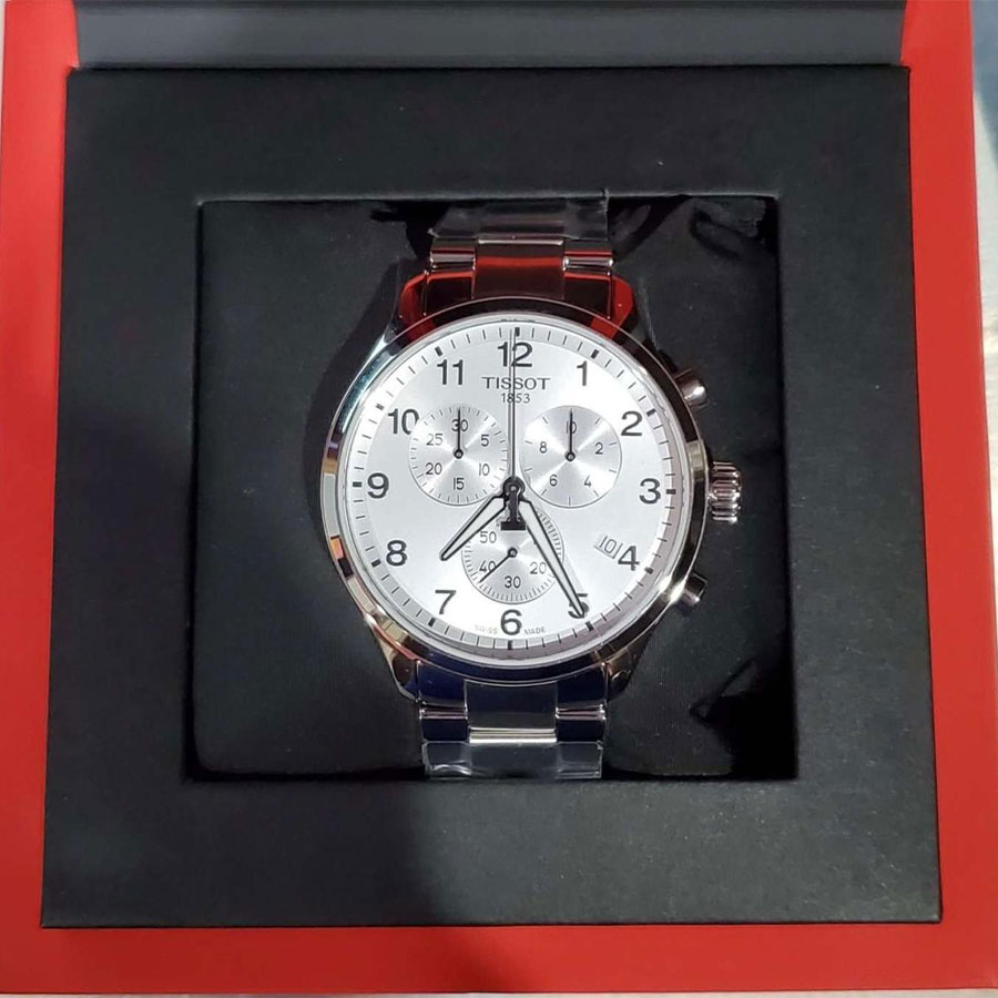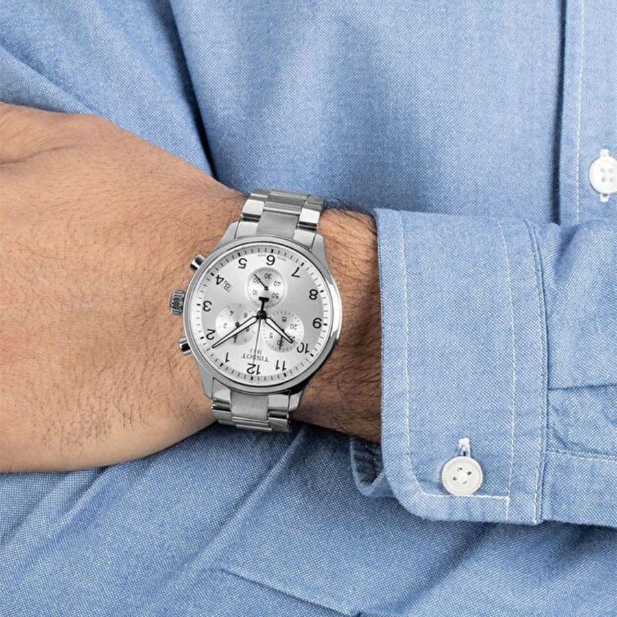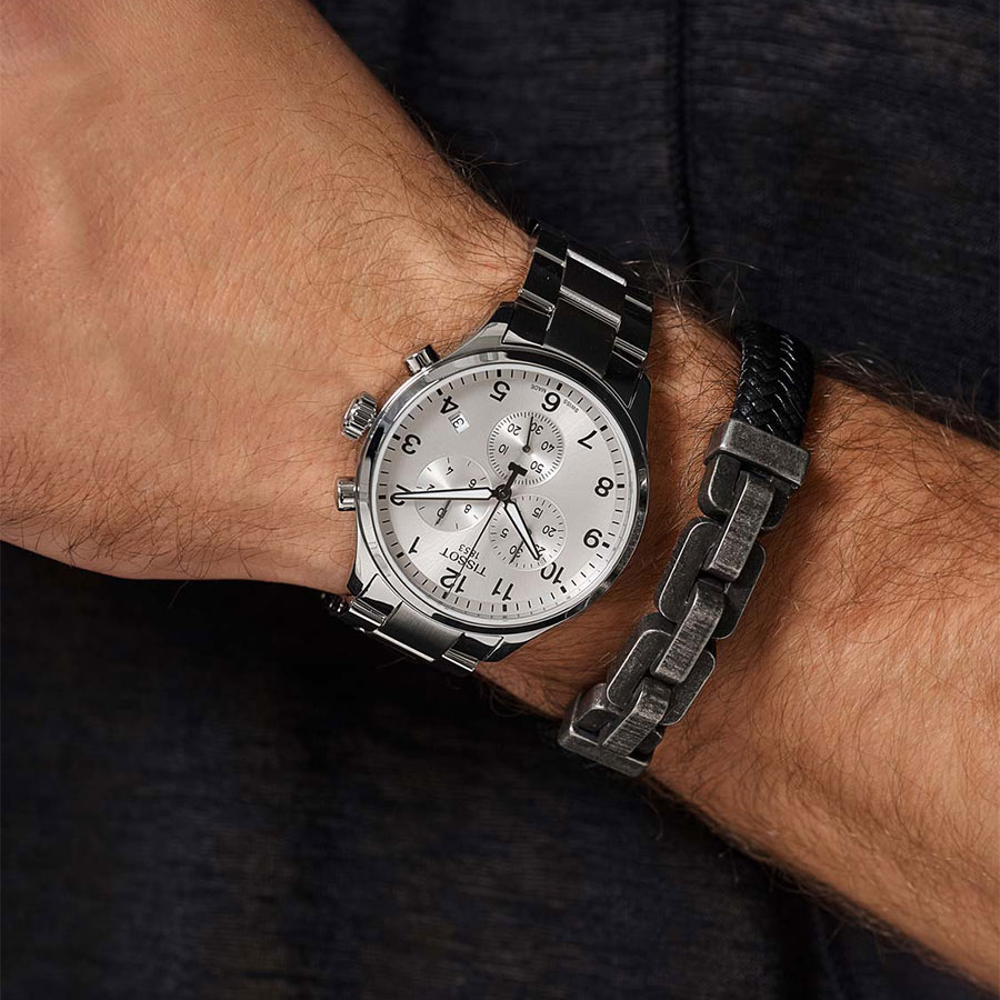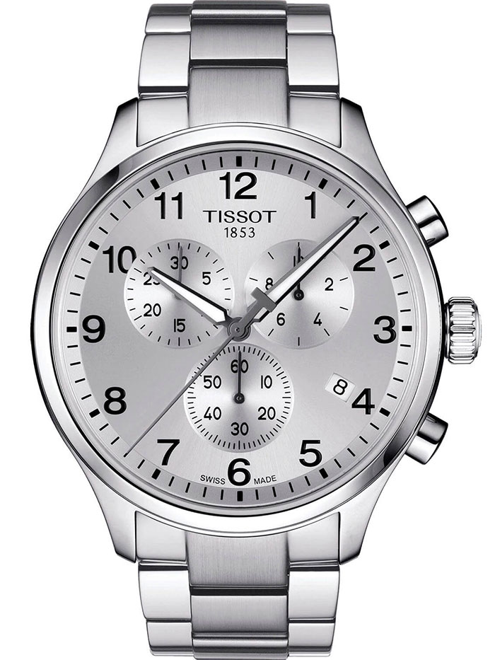Мужские кварцевые наручные часы с хронографом (секундомером) TISSOT Chrono XL Classic T116.617.11.037.00 коллекции T Sport. Калибр механизма — ETA G10.212. На данной модели отображается текущая дата. Секундомер может отсчитывать до 29 минут 59 секунд. Стрелки покрыты люминесцентным напылением (светятся в темноте). Сапфировое стекло с антибликовым покрытием, устойчивое к появлению царапин. Стальной браслет. Водонепроницаемость WR100 (10 атм). Размеры корпуса: (ШxТ) 45x11 мм. Гарантийный срок — 3 года (1 год от производителя + 2 года от магазина).