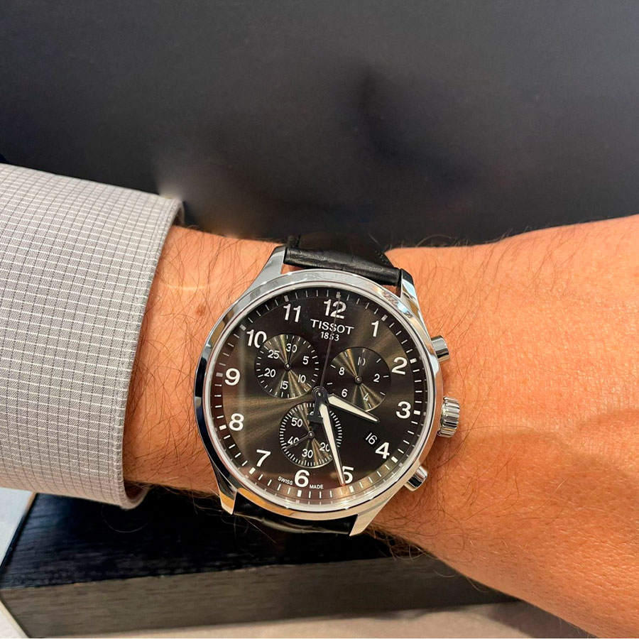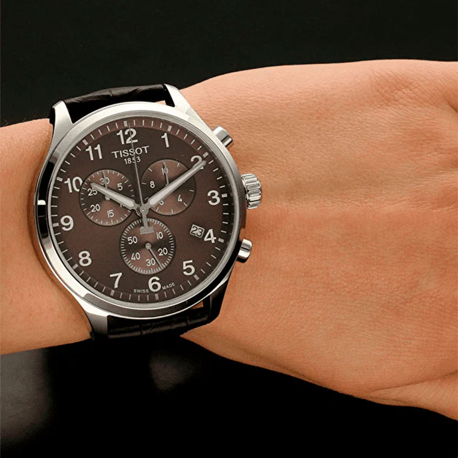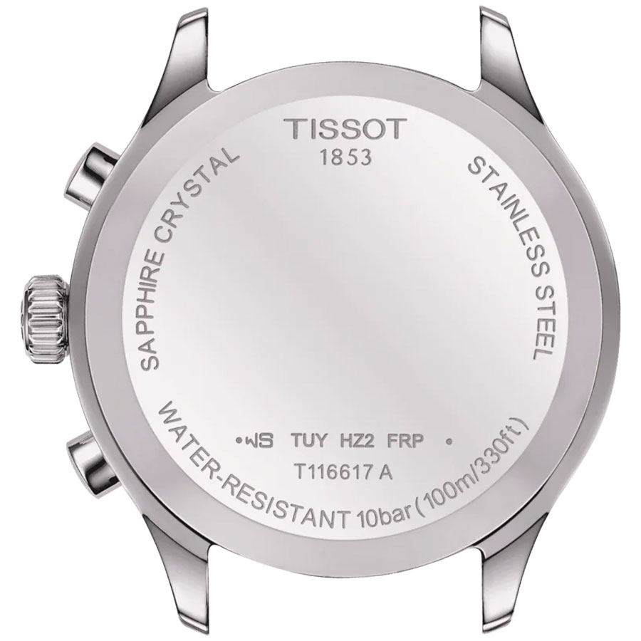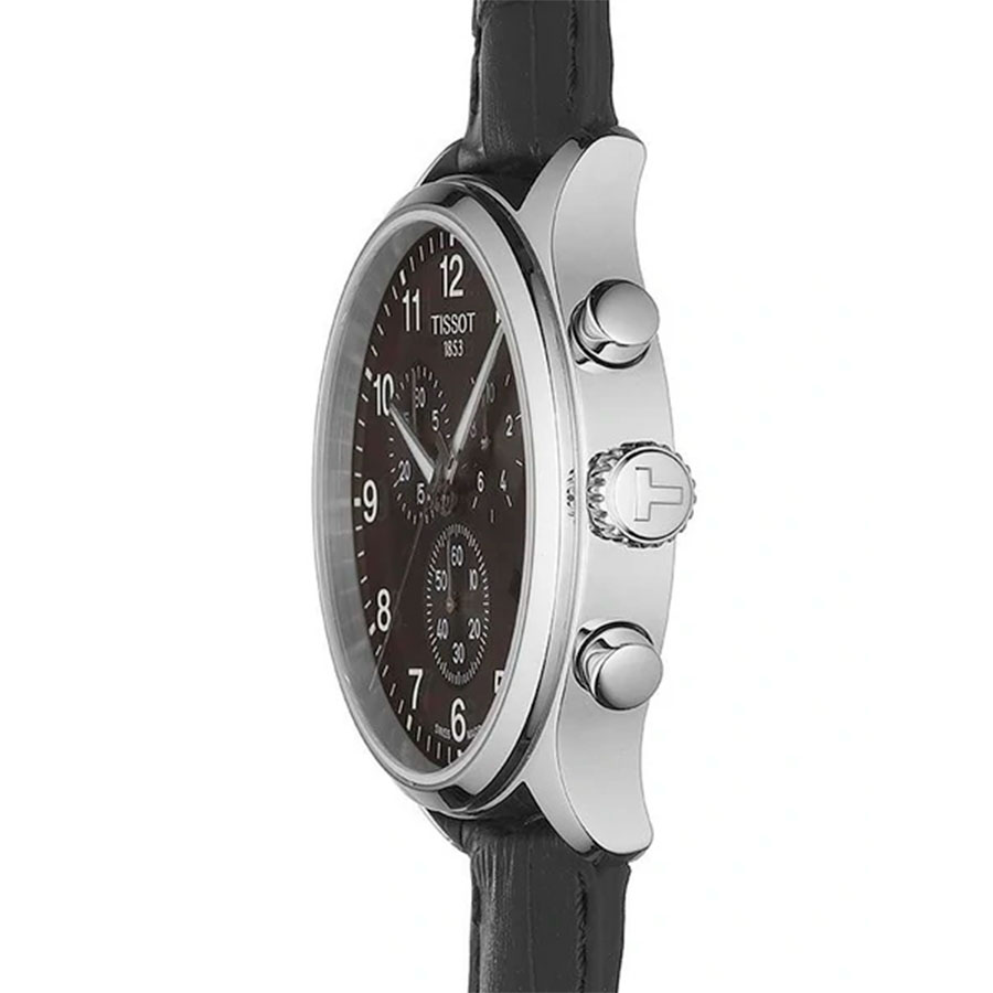 Мужские кварцевые наручные часы с хронографом (секундомером) TISSOT Chrono XL Classic T116.617.16.057.00 коллекции T Classic. Калибр механизма — ETA G10.212. На данной модели отображается текущая дата. Секундомер может отсчитывать до 29 минут 59 секунд. Стрелки покрыты люминесцентным напылением (светятся в темноте). Сапфировое стекло с антибликовым покрытием, устойчивое к появлению царапин. Кожаный ремешок. Водонепроницаемость WR100 (10 атм). Размеры корпуса: (ШxТ) 45x11 мм. Гарантийный срок — 3 года (1 год от производителя + 2 года от магазина).