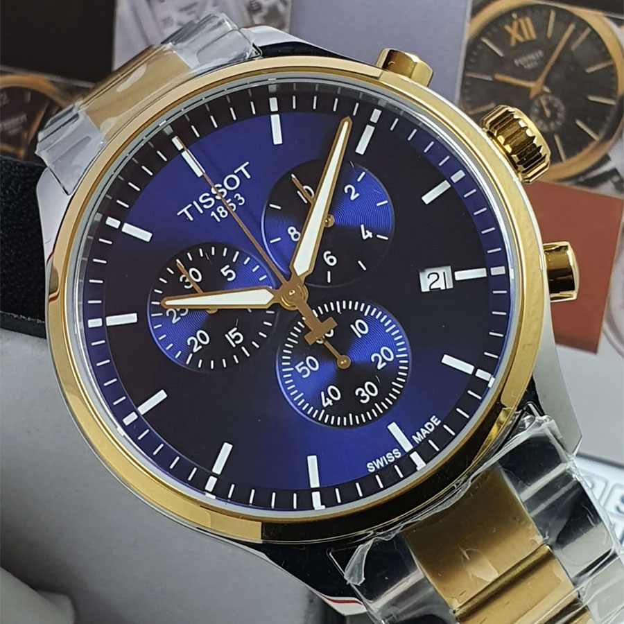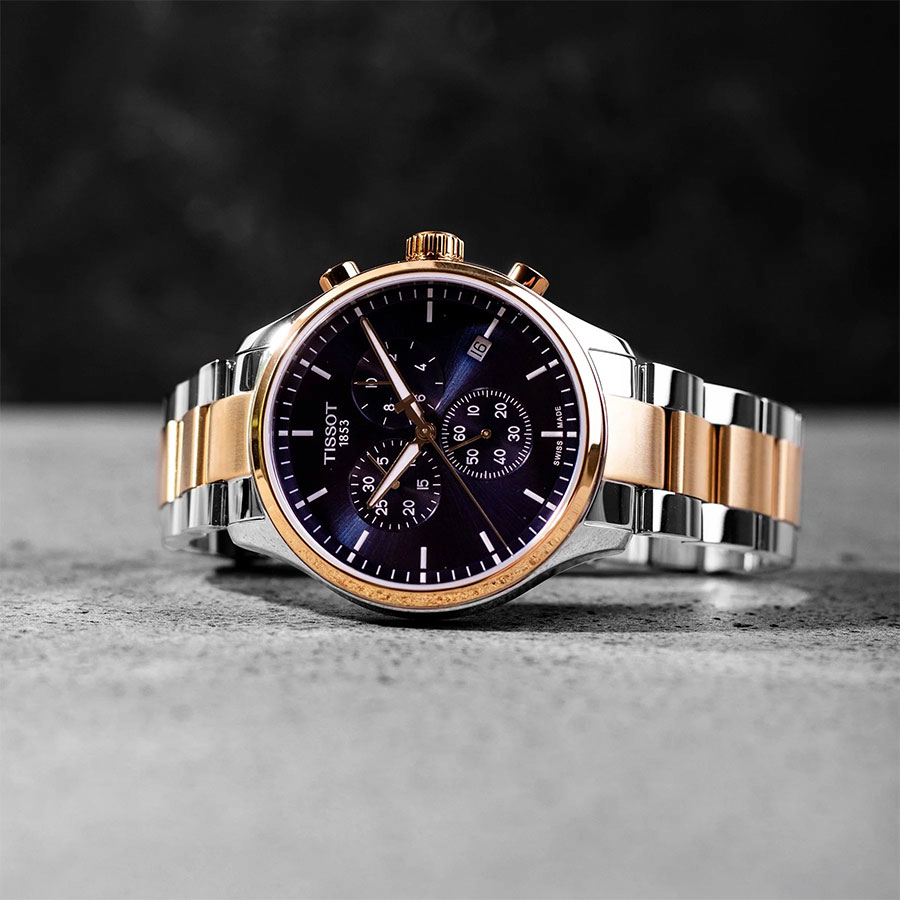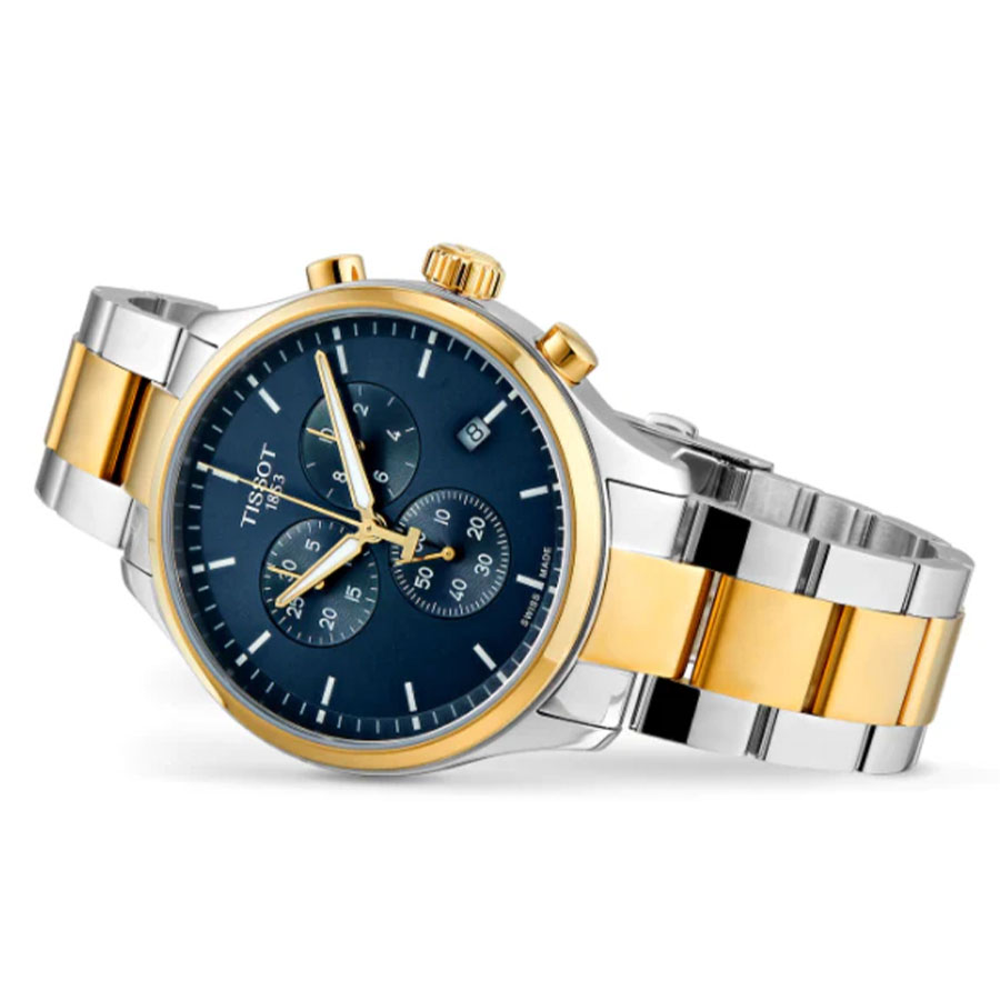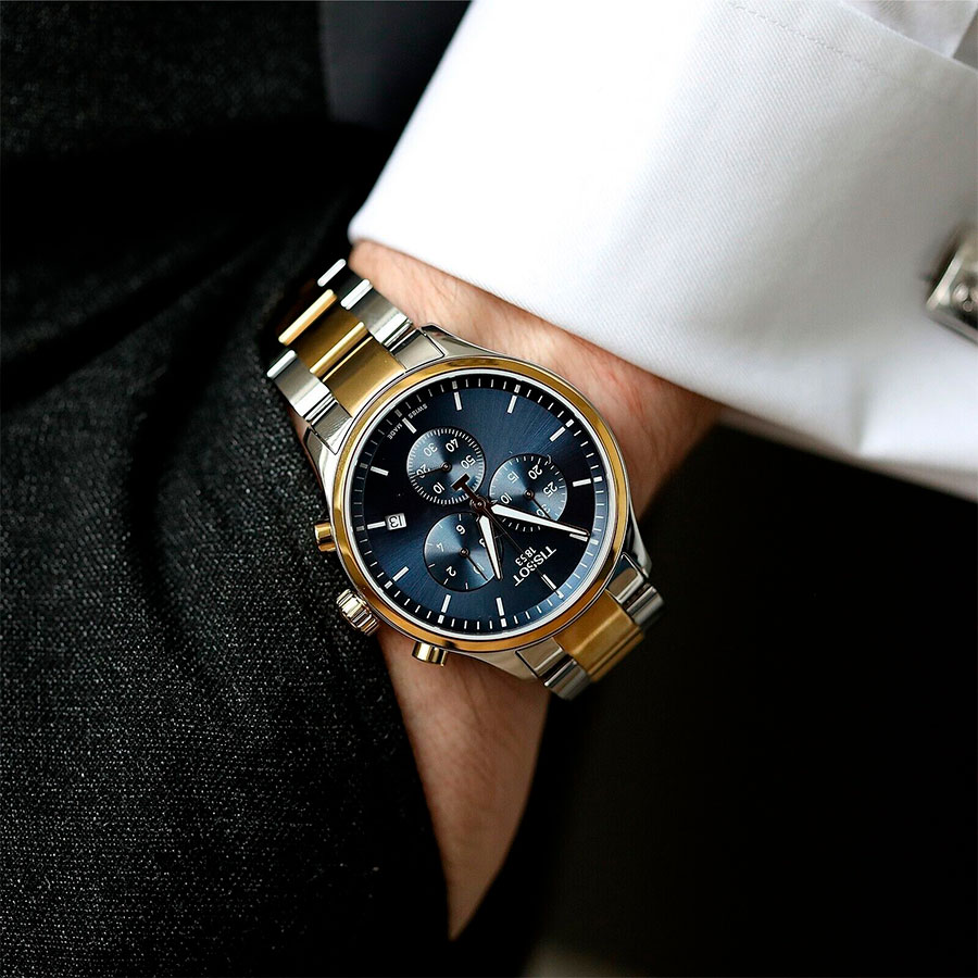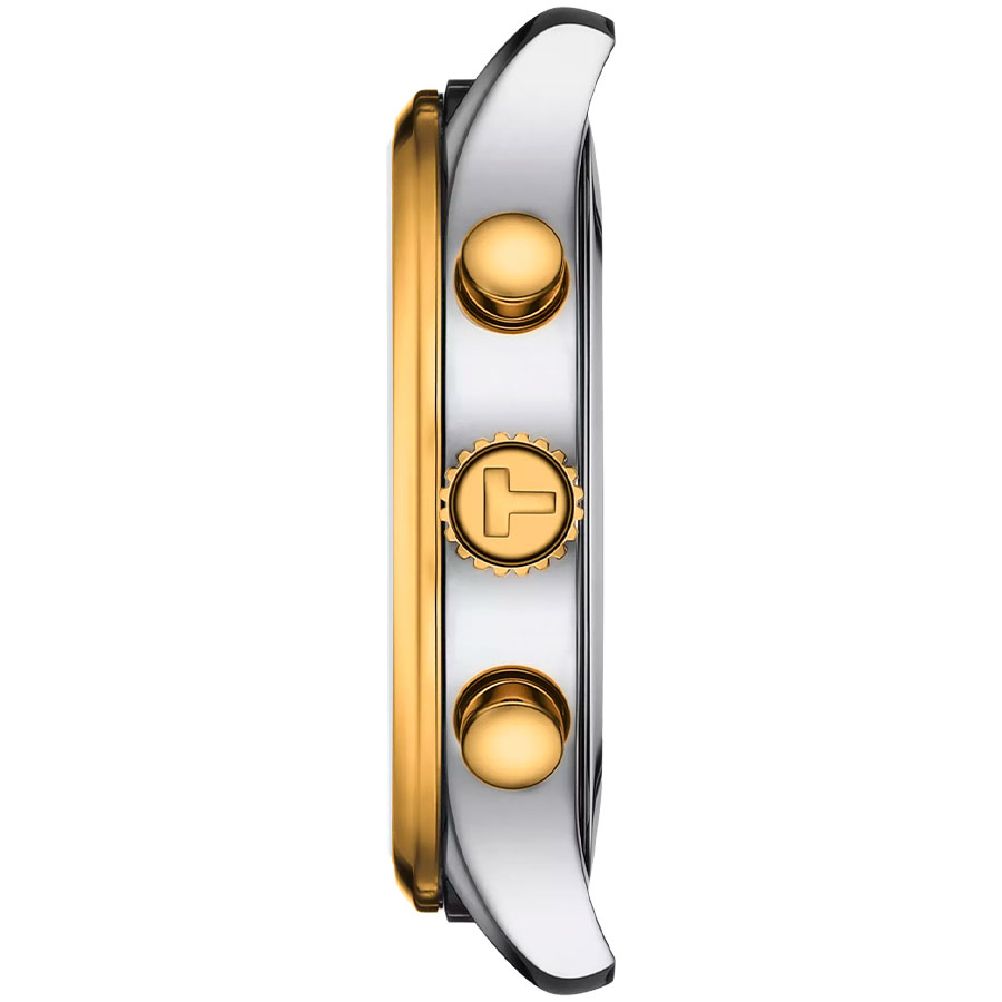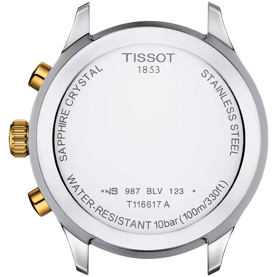 Мужские кварцевые наручные часы с хронографом (секундомером) TISSOT Chrono XL Classic T116.617.22.041.00 коллекции T Classic. Калибр механизма — ETA G10.212. На данной модели отображается текущая дата. Секундомер может отсчитывать до 29 минут 59 секунд. Стрелки покрыты люминесцентным напылением (светятся в темноте). Сапфировое стекло с антибликовым покрытием, устойчивое к появлению царапин. Стальной браслет. На корпус и браслет частично нанесено стойкое PVD покрытие. Водонепроницаемость WR100 (10 атм). Размеры корпуса: (ШxТ) 45x11 мм. Гарантийный срок — 3 года (1 год от производителя + 2 года от магазина).
