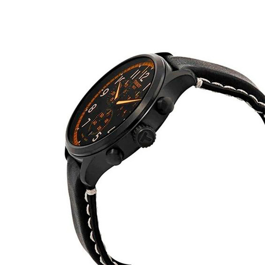 Мужские кварцевые наручные часы с хронографом (секундомером) TISSOT Chrono XL Vintage T116.617.36.052.02 коллекции T Classic. Калибр механизма — ETA G10.212. На данной модели отображается текущая дата. Секундомер может отсчитывать до 29 минут 59 секунд. Стрелки покрыты люминесцентным напылением (светятся в темноте). Сапфировое стекло с антибликовым покрытием, устойчивое к появлению царапин. Кожаный ремешок. На корпус нанесено стойкое PVD покрытие. Водонепроницаемость WR100 (10 атм). Размеры корпуса: (ШxТ) 45x11 мм. Гарантийный срок — 3 года (1 год от производителя + 2 года от магазина).