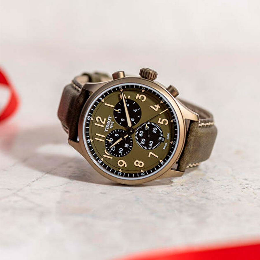 Мужские кварцевые наручные часы с хронографом (секундомером) TISSOT Chrono XL Vintage T116.617.36.092.00 коллекции T Classic. Калибр механизма — ETA G10.212. На данной модели отображается текущая дата. Секундомер может отсчитывать до 29 минут 59 секунд. Стрелки покрыты люминесцентным напылением (светятся в темноте). Сапфировое стекло с антибликовым покрытием, устойчивое к появлению царапин. Кожаный ремешок. На корпус нанесено стойкое PVD покрытие. Водонепроницаемость WR100 (10 атм). Размеры корпуса: (ШxТ) 45x11 мм. Гарантийный срок — 3 года (1 год от производителя + 2 года от магазина).