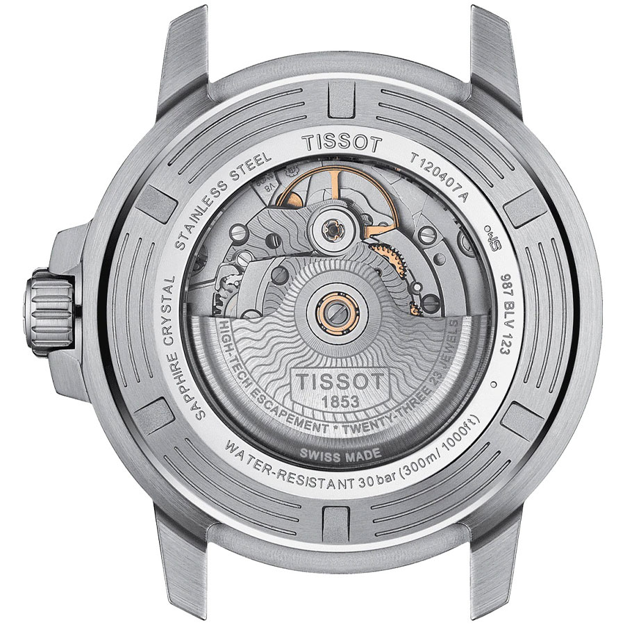 Мужские механические наручные часы TISSOT Seastar 1000 Powermatic 80 T120.407.11.041.03 коллекции T Sport с автоподзаводом и возможностью ручного завода. Калибр механизма — Powermatic 80.111. В механизме часов использована запатентованная балансирная пружина Nivachron, благодаря чему запас хода значительно увеличен и составляет не менее 80-ти часов. Количество камней - 23. Функция стоп-секунда (остановка секундной стрелки для установки точного времени). На данной модели отображается текущая дата. Стрелки и метки покрыты люминесцентным напылением Super-LumiNova® (светятся в темноте). Сапфировое стекло с антибликовым покрытием, устойчивое к появлению царапин. Прозрачная задняя крышка. Завинчивающиеся заводная головка и задняя крышка. Однонаправленный вращающийся безель с керамической вставкой. Стальной браслет с возможностью быстрого удлинения для удобного использования с гидрокостюмом. Водонепроницаемость WR300 (30 атм). Размеры корпуса: (ШxТ) 43x12.7 мм. Гарантийный срок — 3 года (1 год от производителя + 2 года от магазина).