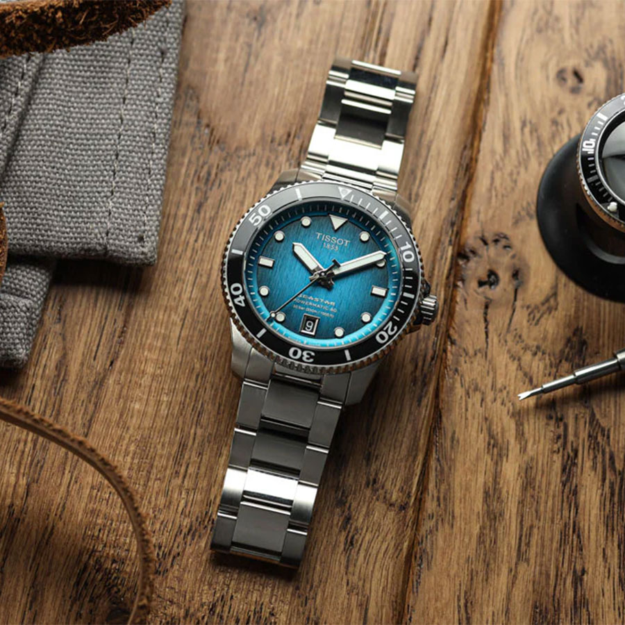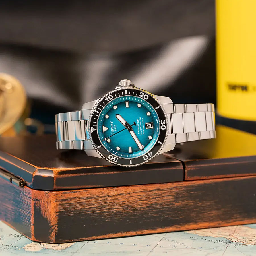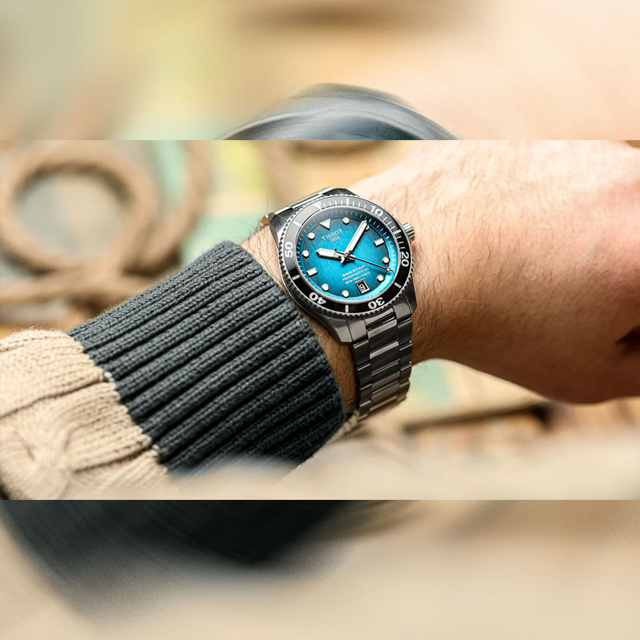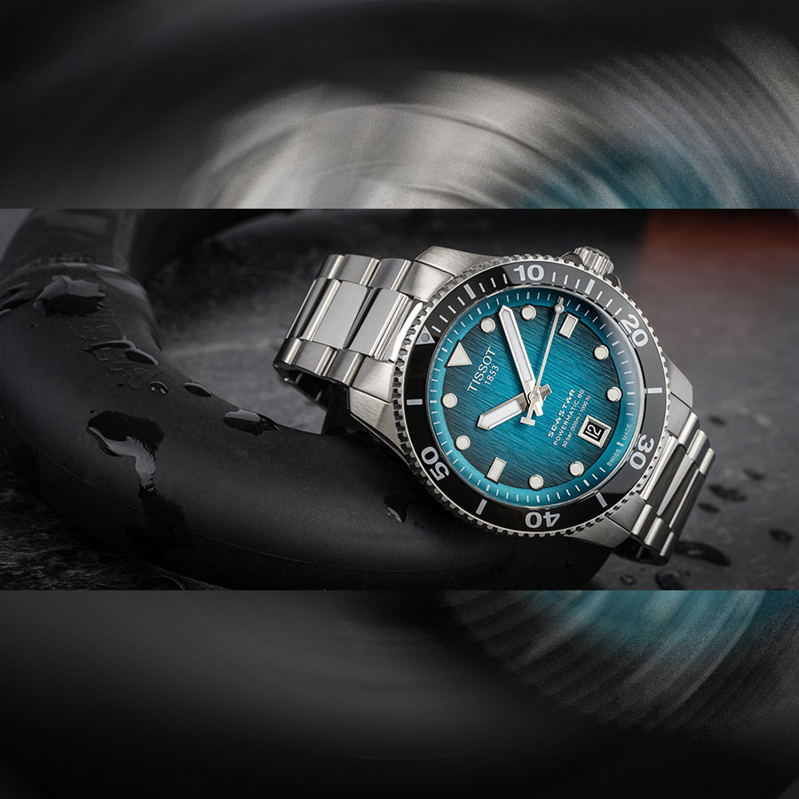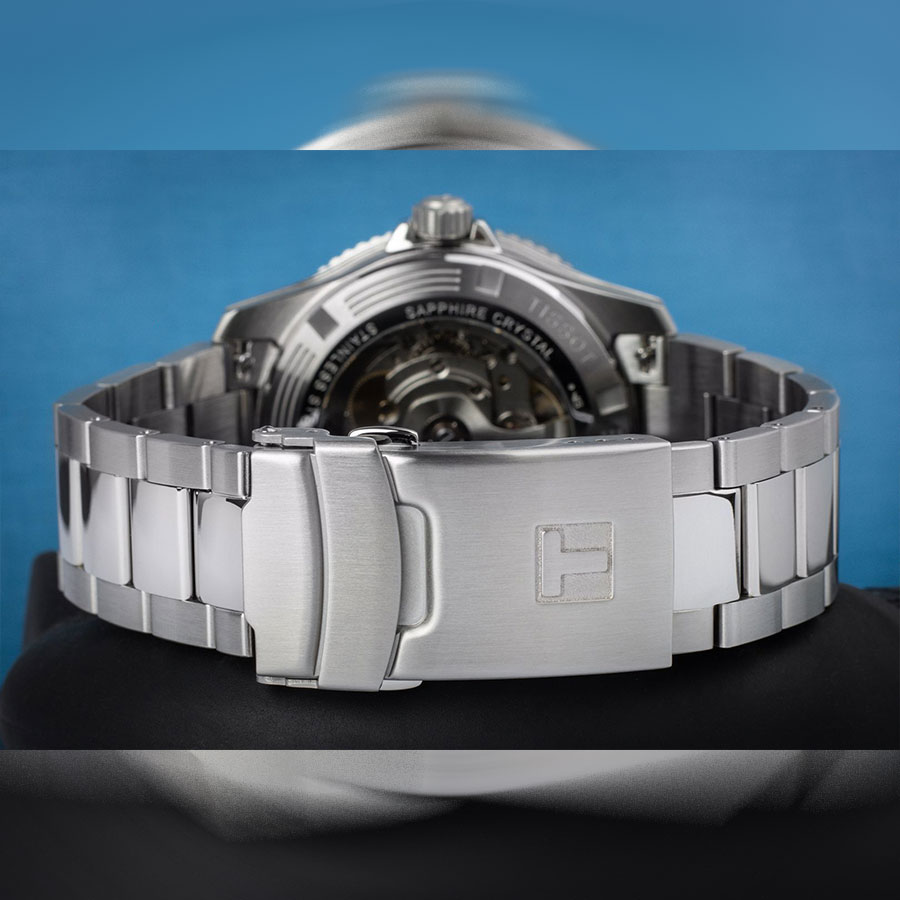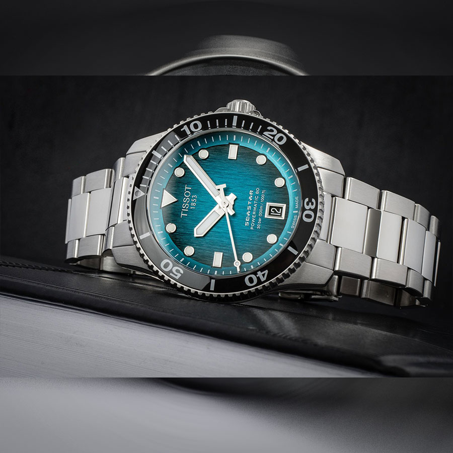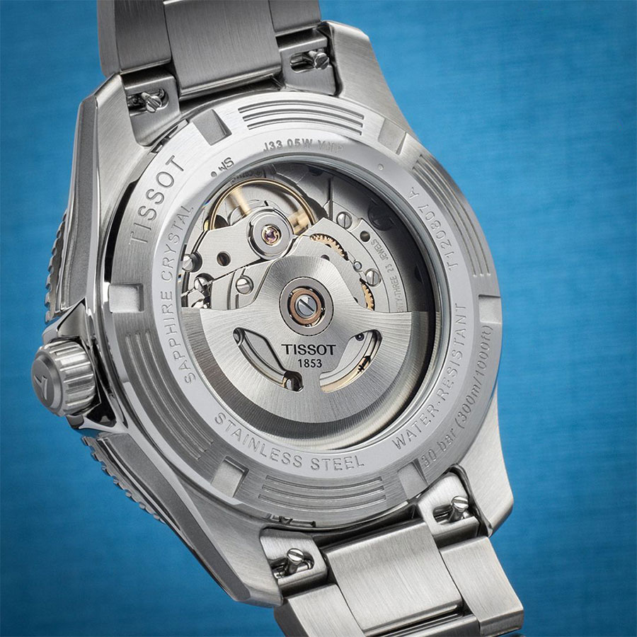 Мужские механические наручные часы TISSOT Seastar 1000 Powermatic 80 T120.807.11.091.00 коллекции T Sport с автоподзаводом и возможностью ручного завода. Калибр механизма — Powermatic 80.111. В механизме часов использована запатентованная балансирная пружина Nivachron, благодаря чему запас хода значительно увеличен и составляет не менее 80-ти часов. Количество камней - 23. Функция стоп-секунда (остановка секундной стрелки для установки точного времени). На данной модели отображается текущая дата. Стрелки и метки покрыты люминесцентным напылением Super-LumiNova® (светятся в темноте). Сапфировое стекло с антибликовым покрытием, устойчивое к появлению царапин. Прозрачная задняя крышка. Завинчивающиеся заводная головка и задняя крышка. Однонаправленный вращающийся безель с вставкой из минерального стекла. Стальной браслет с системой быстрой замены. Водонепроницаемость WR300 (30 атм). Размеры корпуса: (ШxТ) 40x12.5 мм. Гарантийный срок — 3 года (1 год от производителя + 2 года от магазина).
