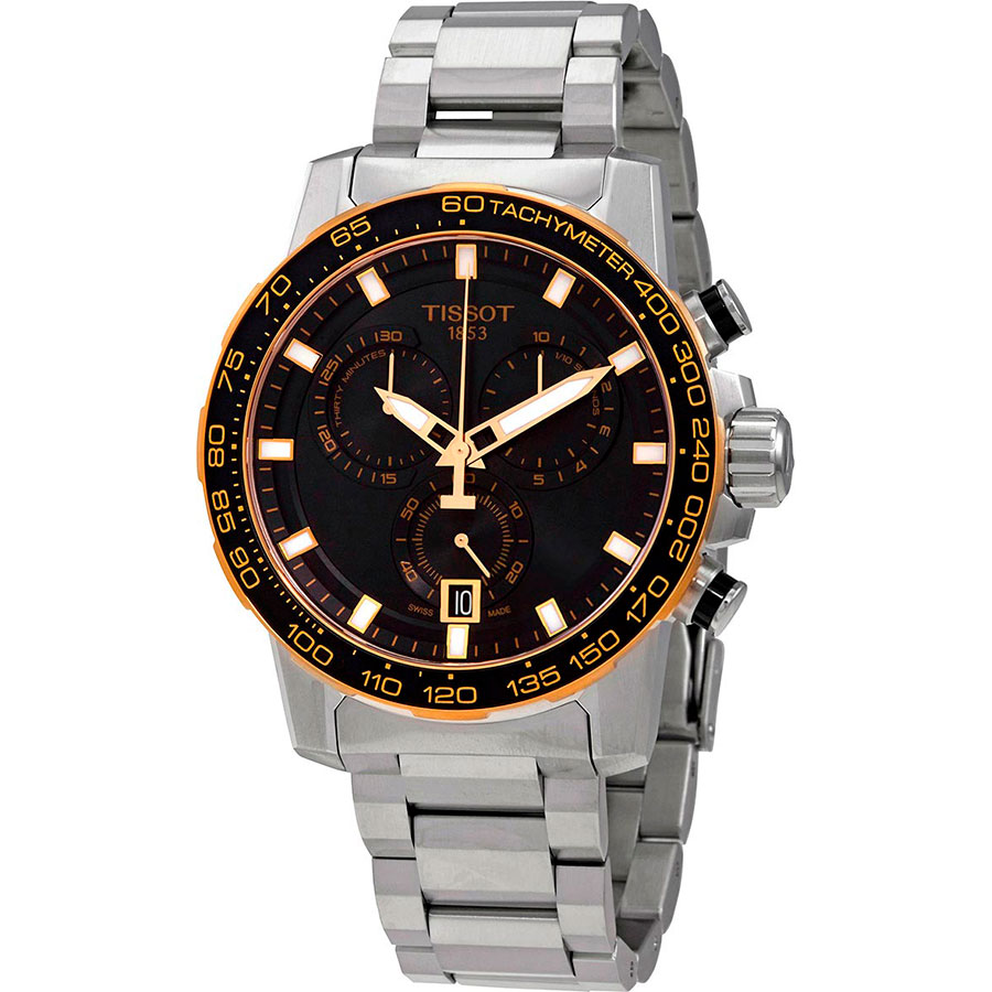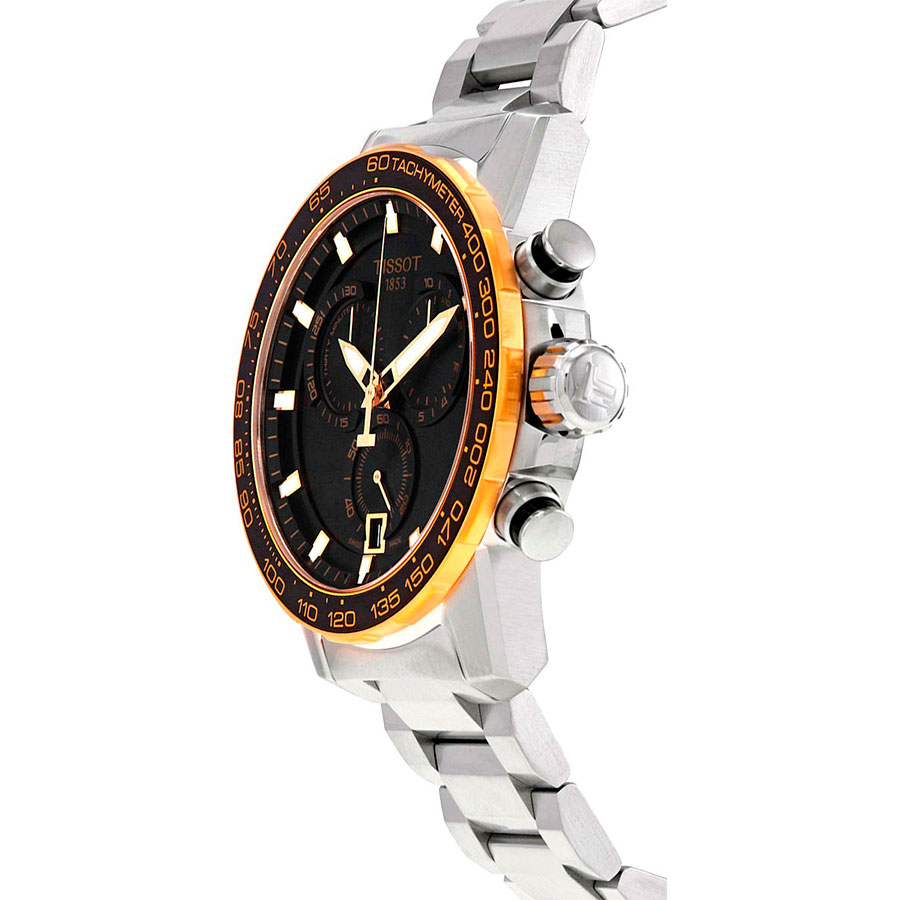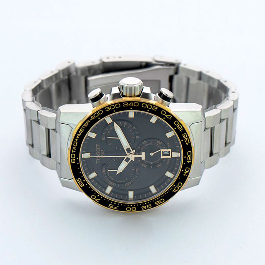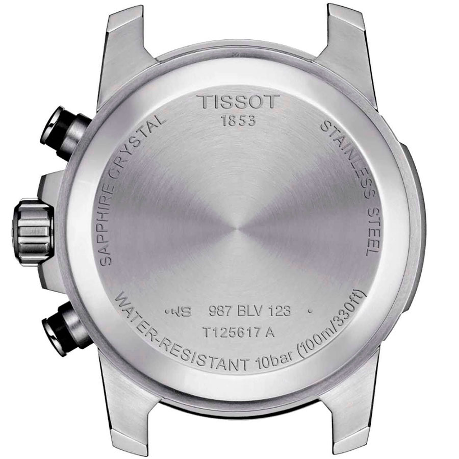Мужские кварцевые наручные часы с хронографом (секундомером) TISSOT SuperSport Chrono T125.617.21.051.00 коллекции T Sport. Калибр механизма — ETA G10.212. На данной модели отображается текущая дата. Секундомер может отсчитывать до 29 минут 59 секунд. На безеле присутсвует шкала тахиметра для измерения средней скорости движения. Стрелки и метки покрыты люминесцентным напылением Super-LumiNova® (светятся в темноте). Сапфировое стекло с антибликовым покрытием, устойчивое к появлению царапин. Стальной браслет. На корпус частично нанесено стойкое PVD покрытие. Водонепроницаемость WR100 (10 атм). Размеры корпуса: (ШxТ) 45.5х12 мм. Гарантийный срок — 3 года (1 год от производителя + 2 года от магазина).