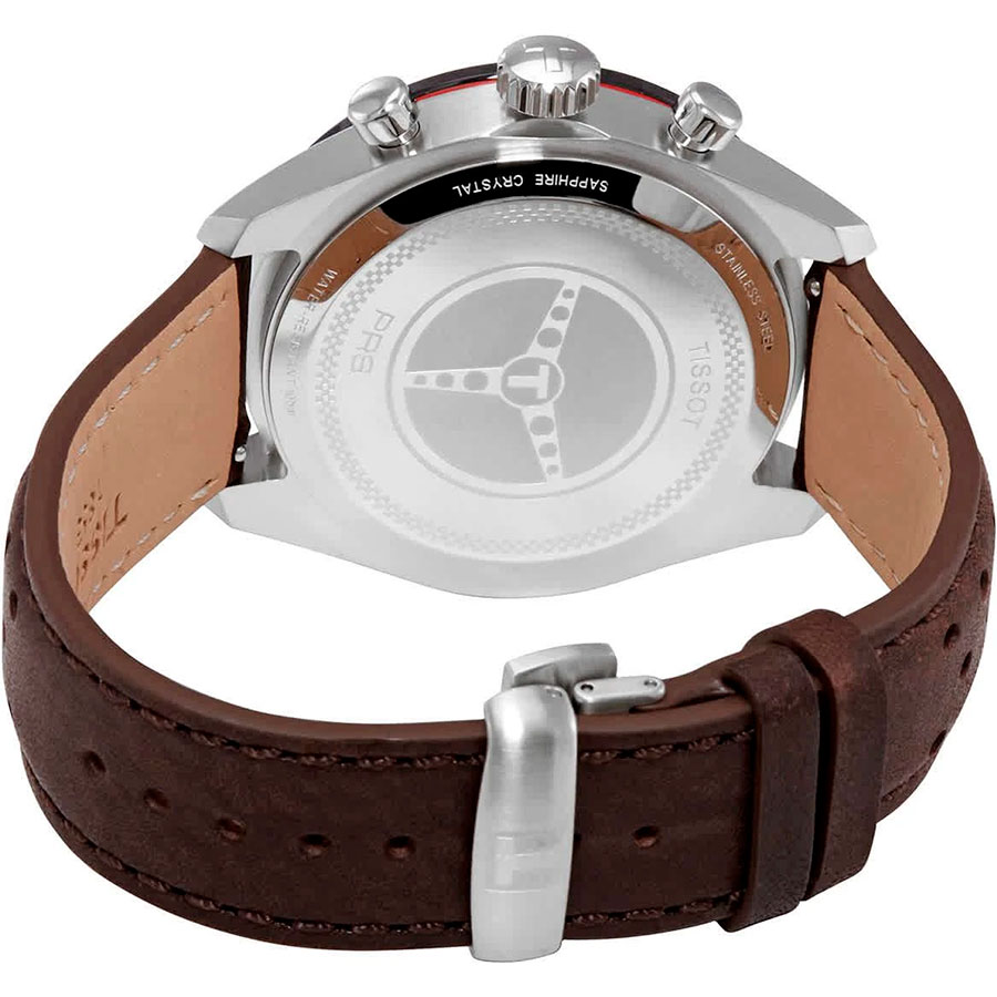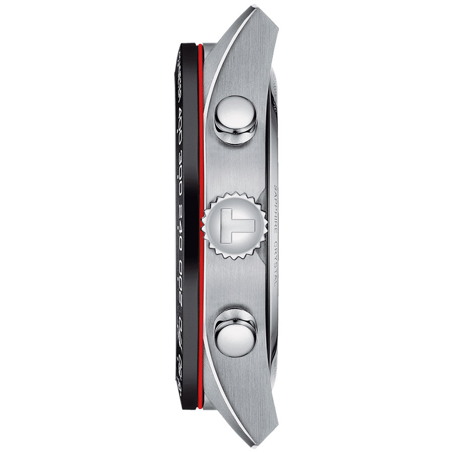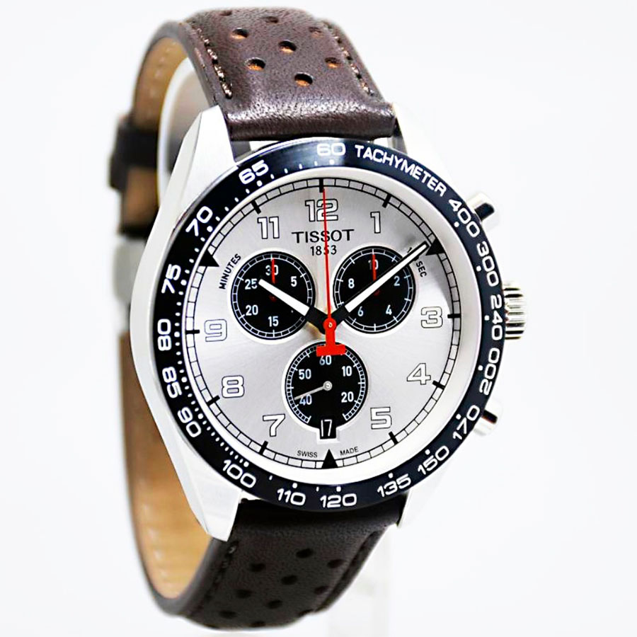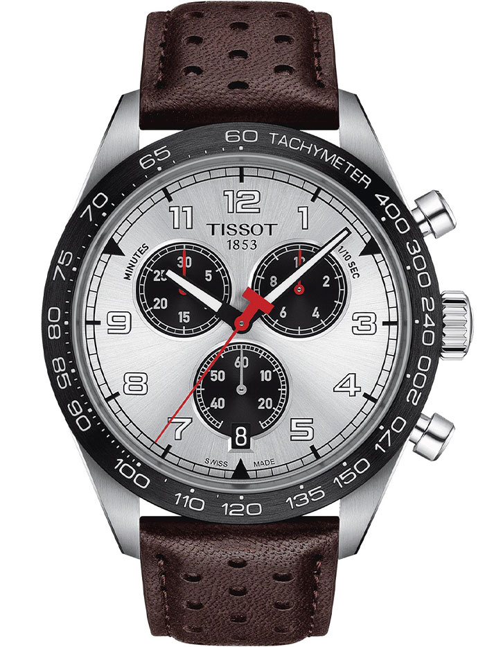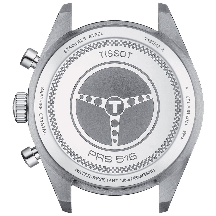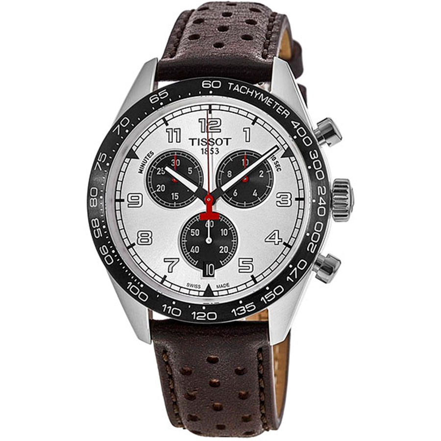 Мужские кварцевые наручные часы с хронографом (секундомером) TISSOT PRS 516 Chronograph T131.617.16.032.00 коллекции T Sport. Калибр механизма — ETA G10.212. На данной модели отображается текущая дата. Секундомер может отсчитывать до 29 минут 59 секунд. На безеле присутсвует шкала тахиметра для измерения средней скорости движения. Стрелки и метки покрыты люминесцентным напылением Super-LumiNova® (светятся в темноте). Сапфировое стекло с антибликовым покрытием, устойчивое к появлению царапин. Кожаный ремешок. Керамический безель. Водонепроницаемость WR100 (10 атм). Размеры корпуса: (ШxТ) 45.5х12 мм. Гарантийный срок — 3 года (1 год от производителя + 2 года от магазина).