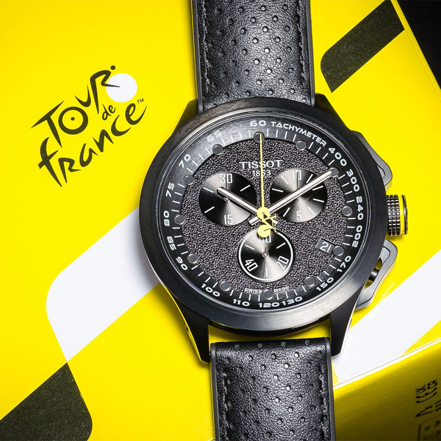 Специальная серия, посвященная велогонке Тур де Франс. Тематический чёрный циферблат с зернистой текстурой отражает дорогу под колёсами велосипедистов. Дизайн включает в себя секундную стрелку в знакомом всем жёлтом цвете «Тур де Франс», искусно выполненную в форме велосипеда. Чёрный диск окошка даты придаёт часам элегантный вид, гармонируя с общей эстетикой. На задней крышке этой модели Grand Tour PR100 выгравирован логотип Тур де Франс.