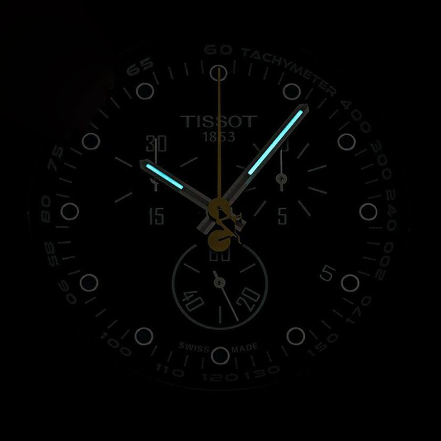 Калибр механизма — ETA G10.212. На данной модели отображается текущая дата. Секундомер может отсчитывать до 29 минут 59 секунд. На циферблате присутсвует шкала тахиметра для измерения средней скорости движения. Стрелки покрыты люминесцентным напылением Super-LumiNova® (светятся в темноте). Сапфировое стекло с антибликовым покрытием, устойчивое к появлению царапин. Кожаный ремешок на полимерной основе. На корпус нанесено стойкое PVD покрытие. Водонепроницаемость WR100 (10 атм). Размеры корпуса: (ШxТ) 45х11 мм. Гарантийный срок — 3 года (1 год от производителя + 2 года от магазина).