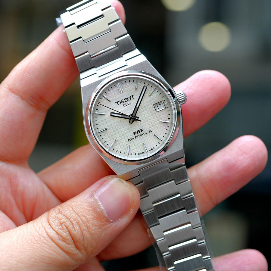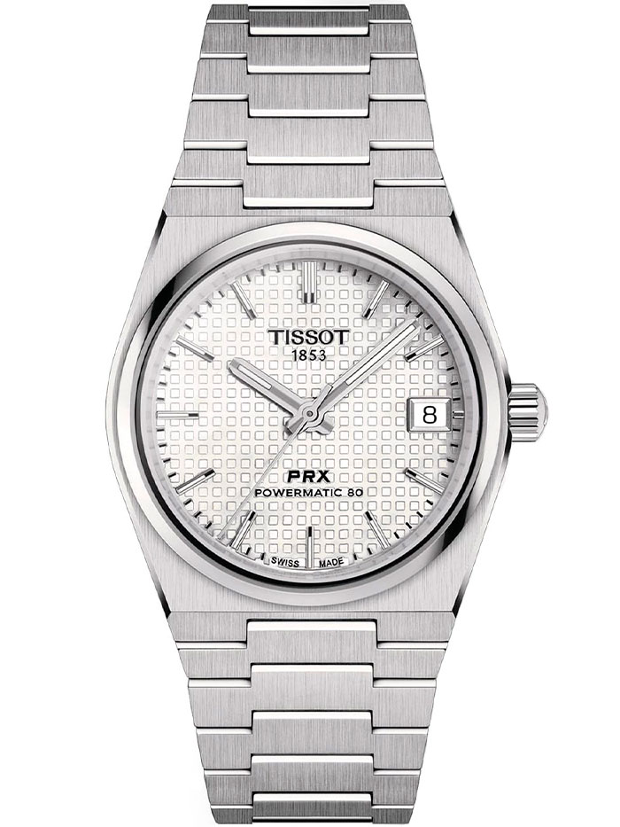 Женские механические наручные часы TISSOT PRX Powermatic 80 35mm T137.207.11.111.00 коллекции T Classic с автоподзаводом и возможностью ручного завода. Калибр механизма — Powermatic 80.111. В механизме часов использована запатентованная балансирная пружина Nivachron, благодаря чему запас хода значительно увеличен и составляет не менее 80-ти часов. Количество камней - 23. Функция стоп-секунда (остановка секундной стрелки для установки точного времени). На данной модели отображается текущая дата. Стрелки и метки покрыты люминесцентным напылением Super-LumiNova® (светятся в темноте). Сапфировое стекло с антибликовым покрытием, устойчивое к появлению царапин. Завинчивающаяся прозрачная задняя крышка. Стальной браслет. Водонепроницаемость WR100 (10 атм). Размеры корпуса: (ШxТ) 35x10.9 мм. Гарантийный срок — 3 года (1 год от производителя + 2 года от магазина).