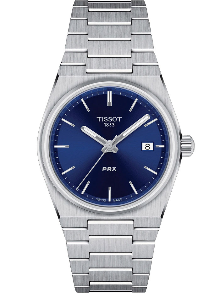 Женские кварцевые наручные часы TISSOT PRX 35 mm T137.210.11.041.00 коллекции T Classic. Калибр механизма — ETA F05.115. На данной модели отображается текущая дата. Стрелки и метки покрыты люминесцентным напылением Super-LumiNova® (светятся в темноте). Сапфировое стекло с антибликовым покрытием, устойчивое к появлению царапин. Стальной браслет. Водонепроницаемость WR100 (10 атм). Размеры корпуса: (ШxТ) 35x9.6 мм. Гарантийный срок — 3 года (1 год от производителя + 2 года от магазина).