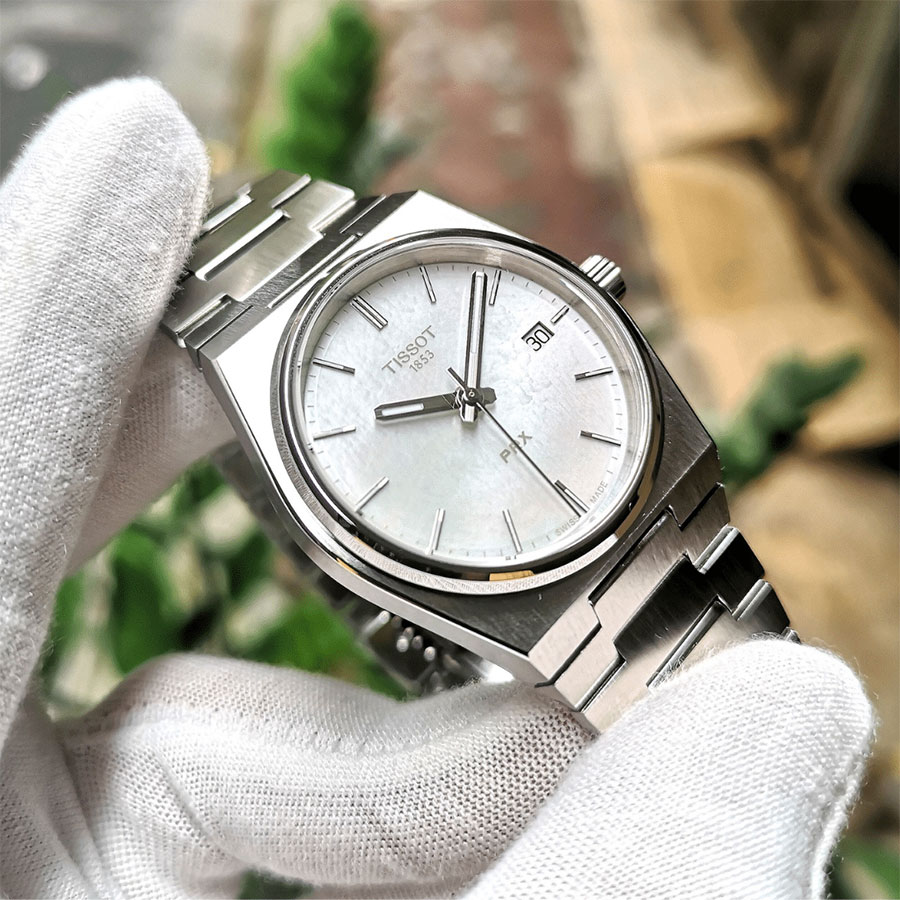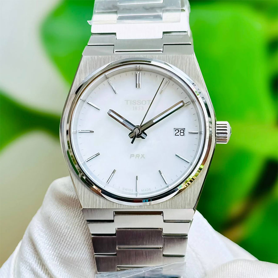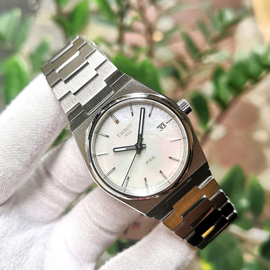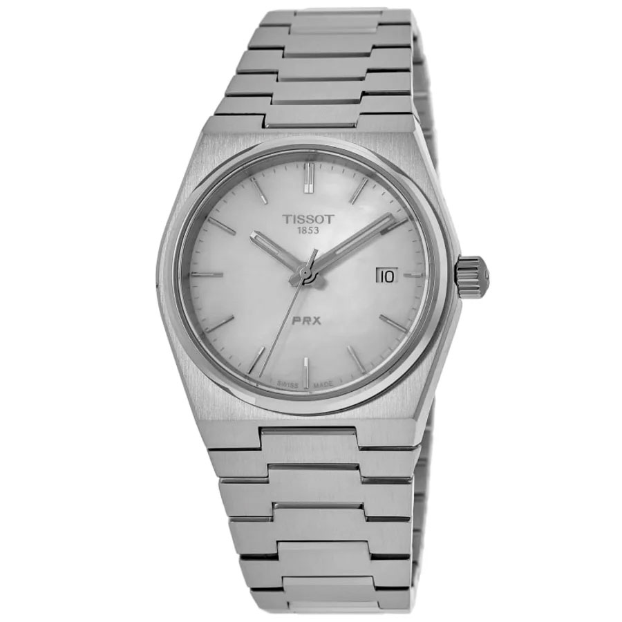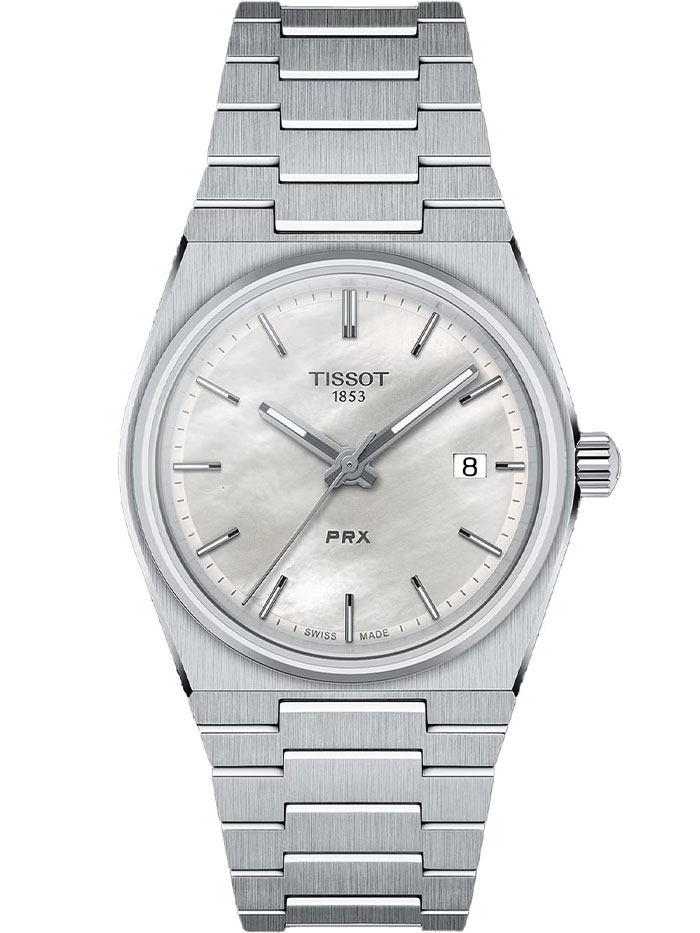 Женские кварцевые наручные часы TISSOT PRX 35 mm T137.210.11.111.00 коллекции T Classic. Калибр механизма — ETA F05.115. На данной модели отображается текущая дата. Стрелки и метки покрыты люминесцентным напылением Super-LumiNova® (светятся в темноте). Сапфировое стекло с антибликовым покрытием, устойчивое к появлению царапин. Стальной браслет. Водонепроницаемость WR100 (10 атм). Размеры корпуса: (ШxТ) 35x9.6 мм. Гарантийный срок — 3 года (1 год от производителя + 2 года от магазина).