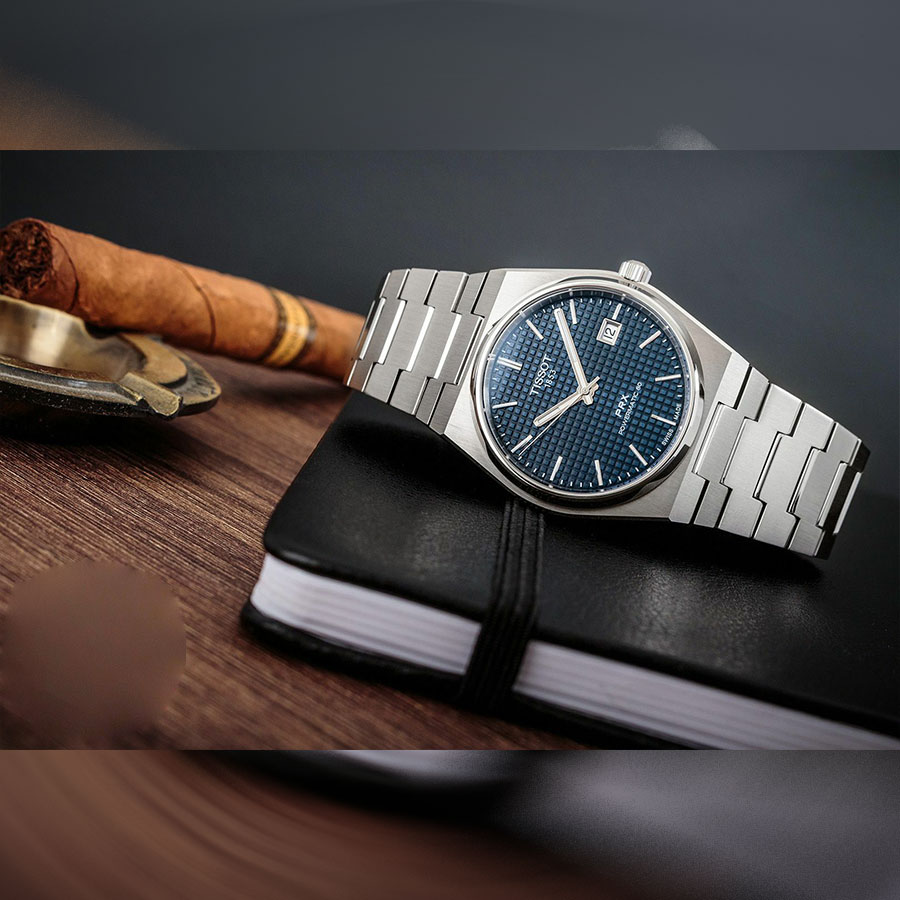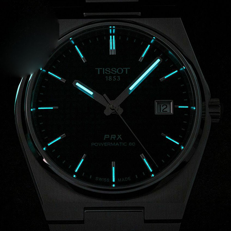 Мужские механические наручные часы TISSOT PRX Powermatic 80 40 мм T137.407.11.041.00 коллекции T Classic с автоподзаводом и возможностью ручного завода. Калибр механизма — Powermatic 80.111. В механизме часов использована запатентованная балансирная пружина Nivachron, благодаря чему запас хода значительно увеличен и составляет не менее 80-ти часов. Количество камней - 23. Функция стоп-секунда (остановка секундной стрелки для установки точного времени). На данной модели отображается текущая дата. Стрелки и метки покрыты люминесцентным напылением Super-LumiNova® (светятся в темноте). Сапфировое стекло с антибликовым покрытием, устойчивое к появлению царапин. Завинчивающаяся прозрачная задняя крышка. Стальной браслет. Водонепроницаемость WR100 (10 атм). Размеры корпуса: (ШxТ) 40x10.9 мм. Гарантийный срок — 3 года (1 год от производителя + 2 года от магазина).